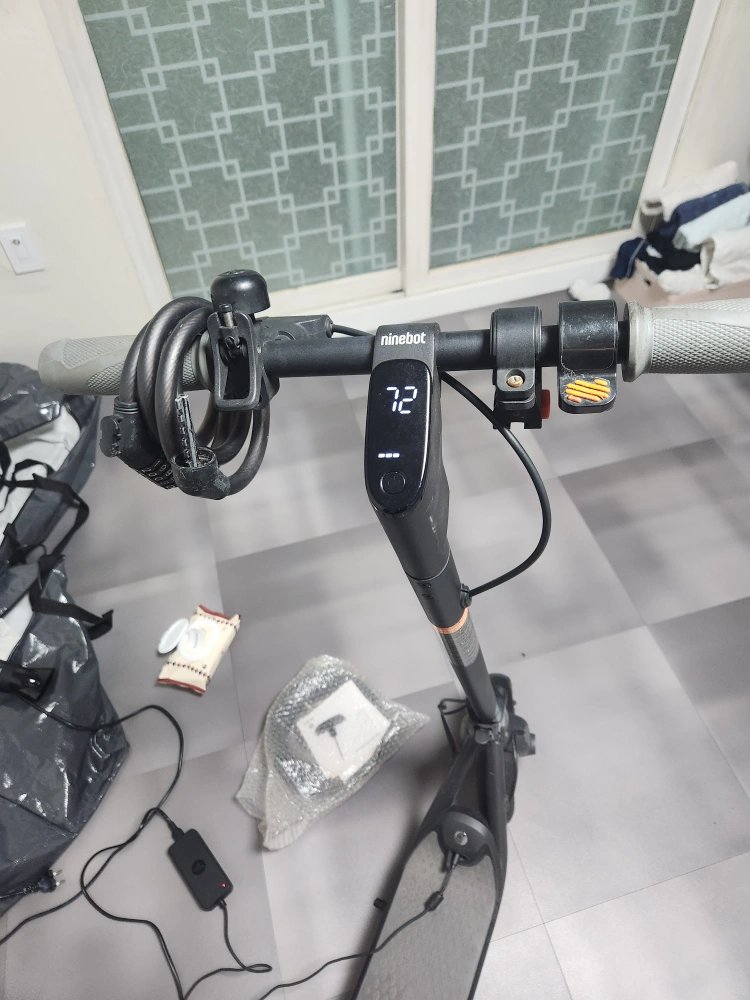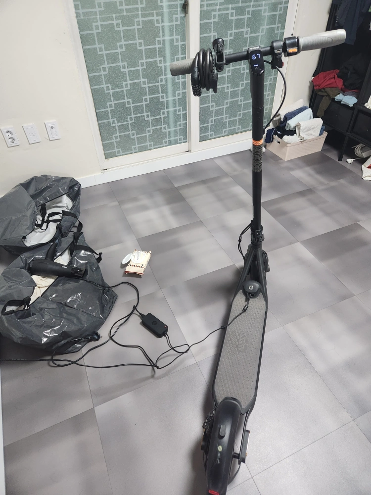 나인봇 F20A 전동퀵보드 판매합니다. 접이식 가능해서 차량 트렁크 수납 가능합니다. 하자는 뒷면바퀴쪽 깨짐 있습니다. 사진으로 확인 하실 수 있습니다.타시는데는 전혀 지장없습니다. 그리고 충전기 같이 드리는데 충전기 접속 불량이 약간 있습니다. 이 또한 충전하는데는 문제 없는데 충전기를 완전히 꽂지않고 반정도 꽂아야 충전이 이상없이 됩니다. 이외에는 사용감 외 별다른 문제는 없네요. 시속 25까지 나오고 에코/드라이브/스피드 모드 조정가능합니다. 또한 핸드폰 세그웨이어플을 통해 블루투스 연동하실 수 있습니다. 아 그리고 구매하시면 자물쇠와 스페어 타이어 하나 같이드리도록 하겠습니다. 직거래는 일월초근처에서 진행하겠습니다.