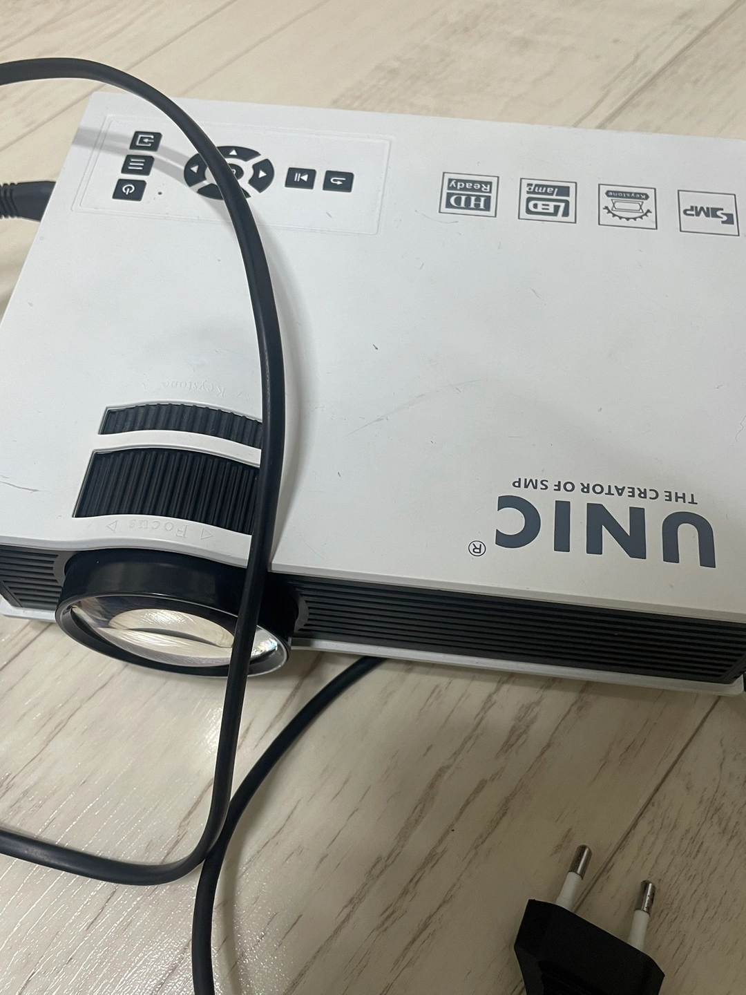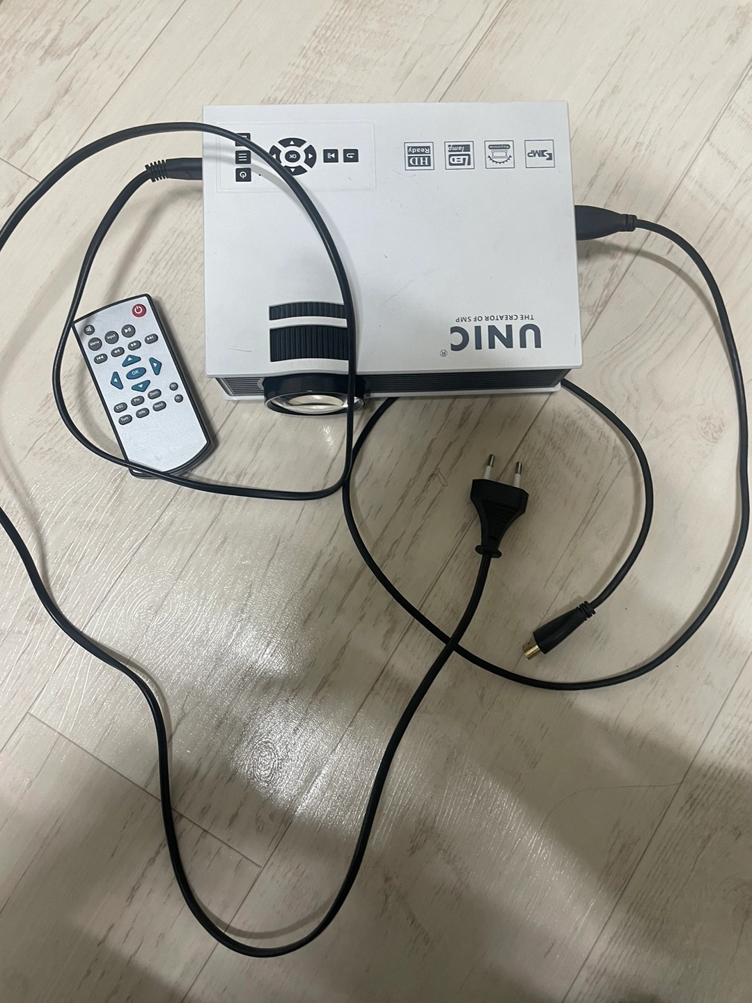 - 입문용으로 좋은 빔프로젝터입니다! - 2,3번째 사진은 제가 직접 사용하고 찍은 사진입니다 (화면 반짝거리게 보이는 것은 제 벽이 그런겁니다) - 최근까지 작동하는데 문제 없는 것 확인했습니다 - Hdmi로 노트북 연결 가능합니다 - 음질 좋지않습니다 소음도 좀 있고요 그래도 영화 여러편 잘 봤습니다 싼맛에 빔프로젝터 경험해보고싶은 분들께 추천드려요 택배로는 픽업택배 직접 신청하시거나 직거래는 중마초등학교에서 합니다 시간은 조율해봐요