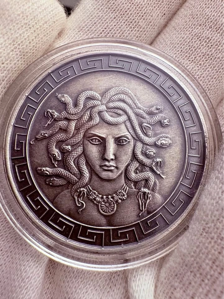 1 oz .999 pure/fine silver bullion "Medusa" round by Anonymous Mint. Only 2000 of these were ever made, this is # 559 as can be seen stamped on the edge and on its included Certificate of Authenticity. Sigma Precious Metals Verifier certified, please see photos. This is a mesmerizing and highly detailed round with built-in intrinsic value and a beautiful antiqued style finish. It would be a great first piece of real silver, or a rare addition to your current collection. The gift box and hard protective capsule are also included. Can meet in public place in Maple Ridge. Thanks! Price can be subject to change with significant market fluctuations in silver spot price.