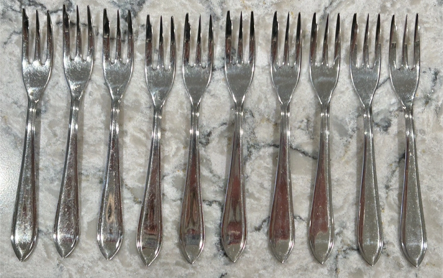 10 Gero Zilmeta Cocktail/Pastry Forks Excellent condition barely used Might just need a bit of a polish Never put in dishwasher so no pitting Approx 5 inch long See other listings for more utensils and kitchen accessories