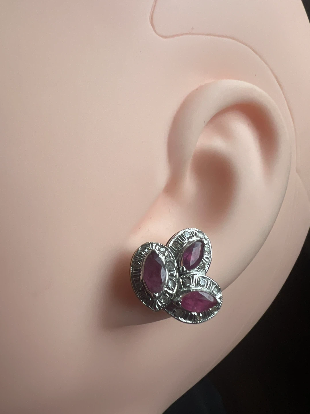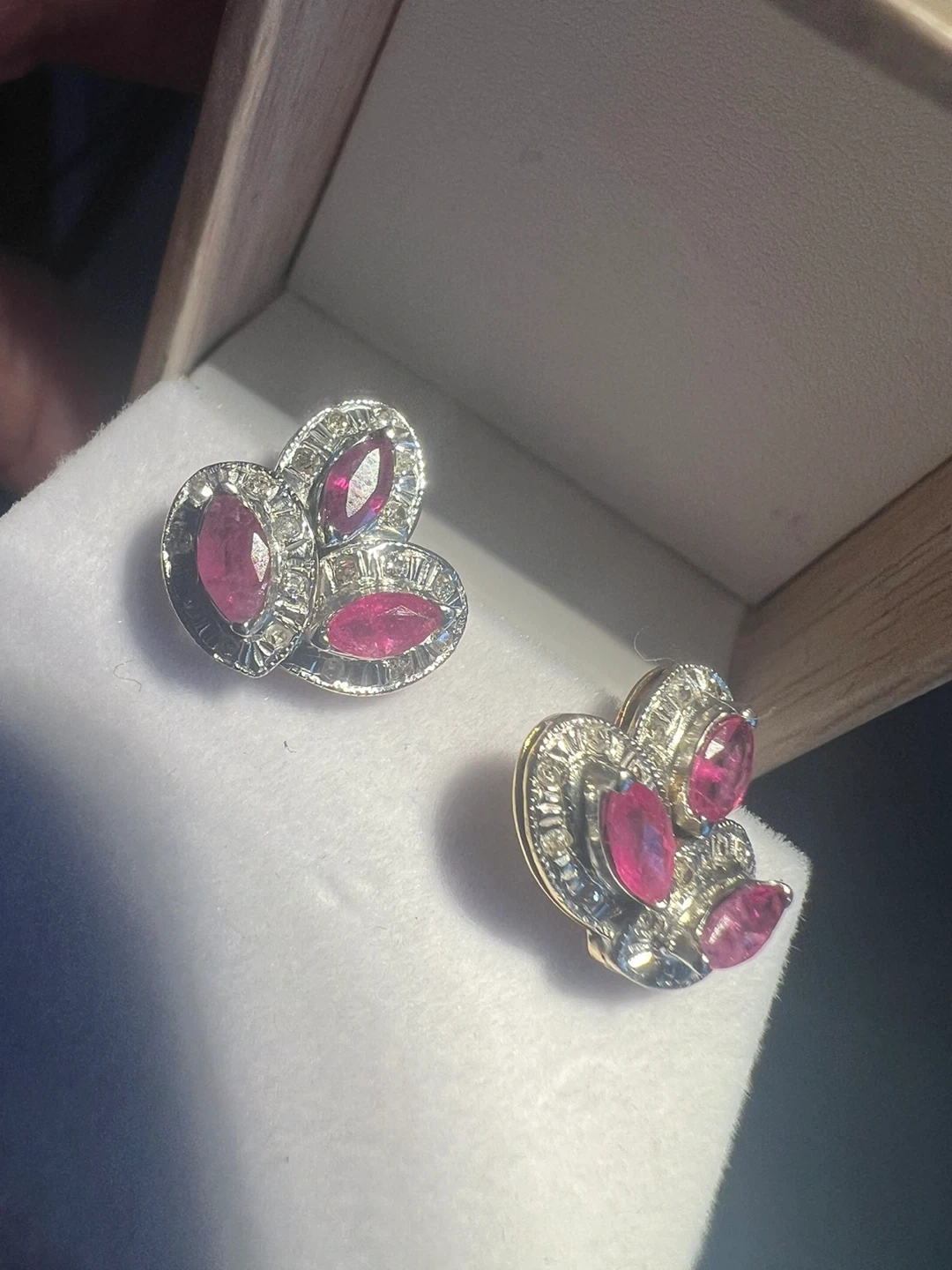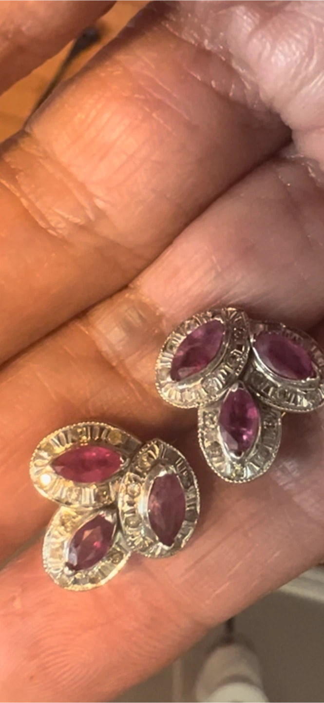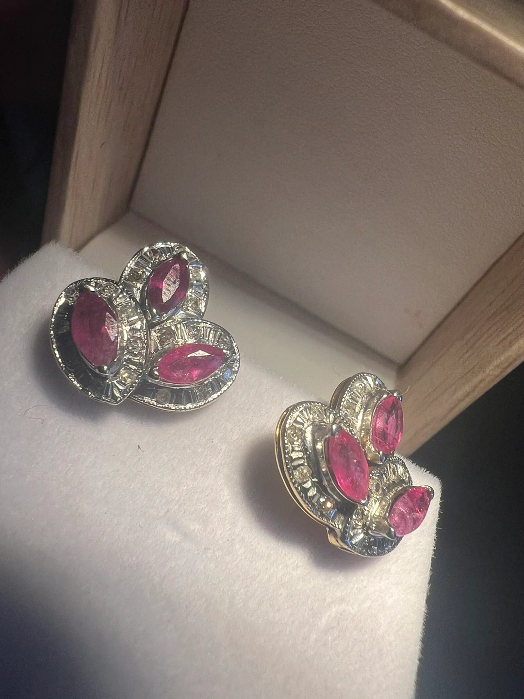 10 k Beautiful ruby and diamond earrings, perfect for adding a touch of elegance to any outfit! They come in a box for safekeeping