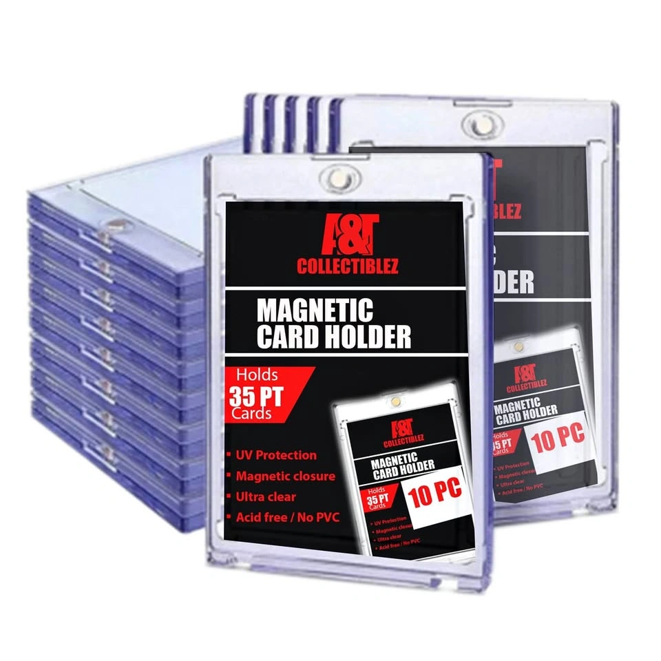 For sale is a set of 10 magnetic sports card holders with diamond-cut edges. These holders are designed to keep your cards safe and secure.