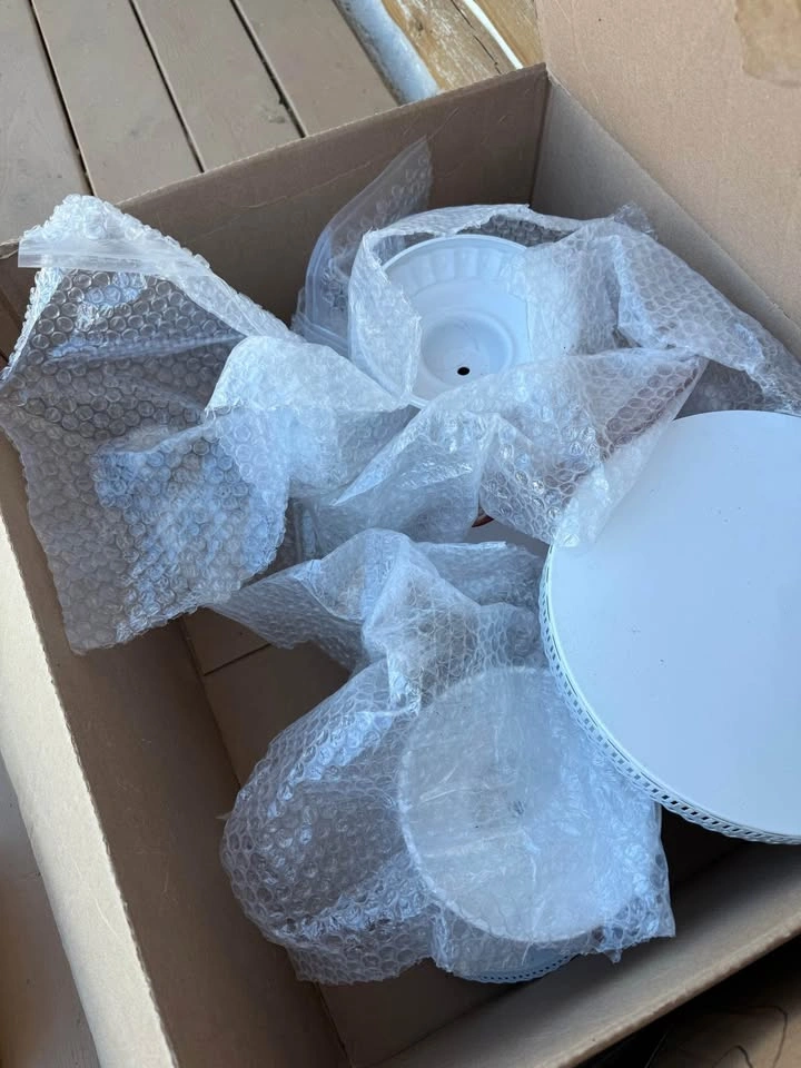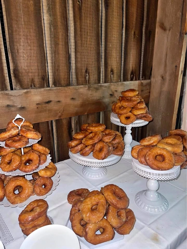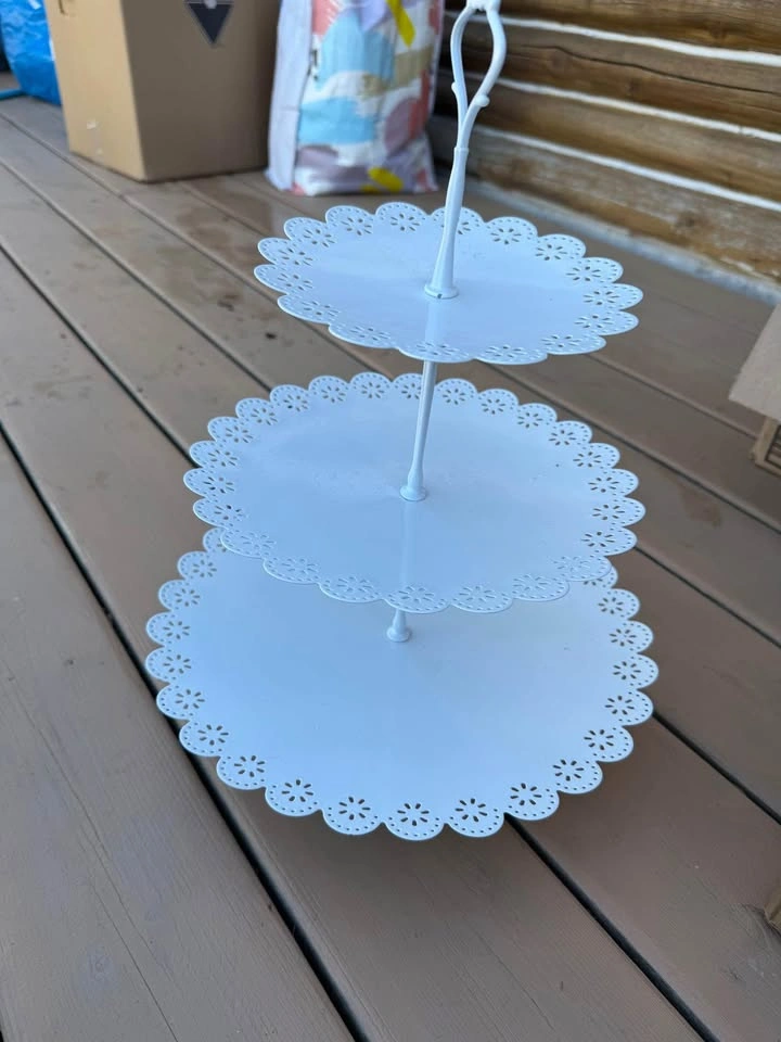 10 piece dessert stand set used at our wedding. We displayed donuts on these, but super cute for any type of dessert display! Feel free to check my other listings for more wedding items!