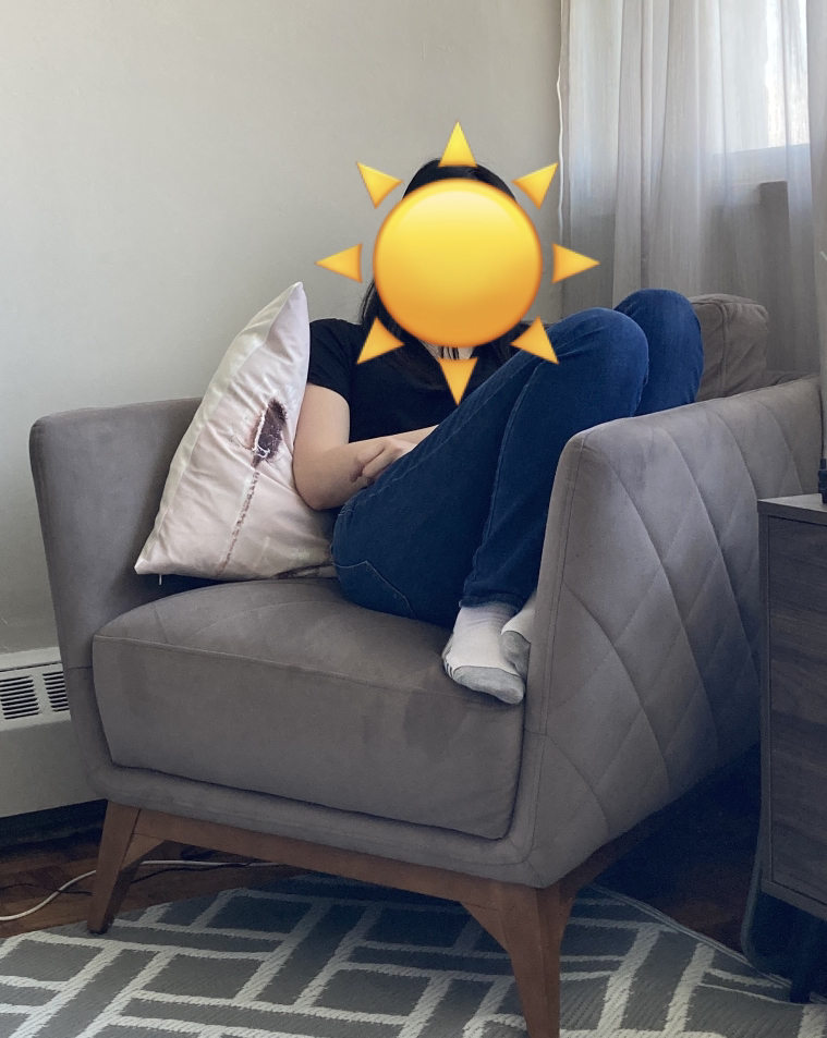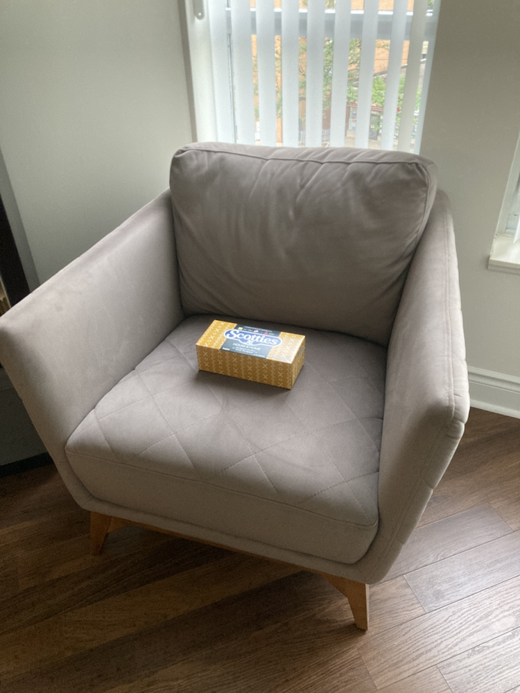 Plush, supportive seat and back cushions. The chair is large and very comfy (seats 1-2). From a pet-free, smoke-free home. Tissue box for size reference. This chair can fit in the back of an SUV but probably not a car. :) Open to haggling or item trade (I can look at your listings). Pickup near Finch and Yonge.
