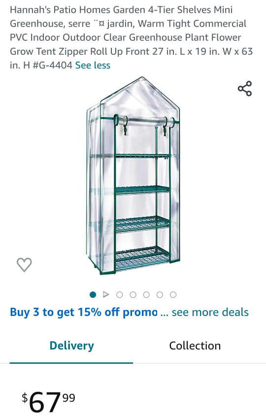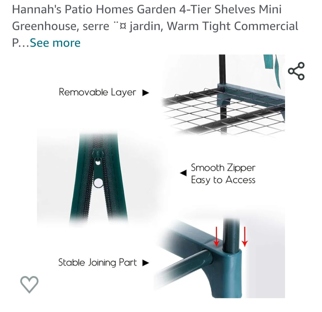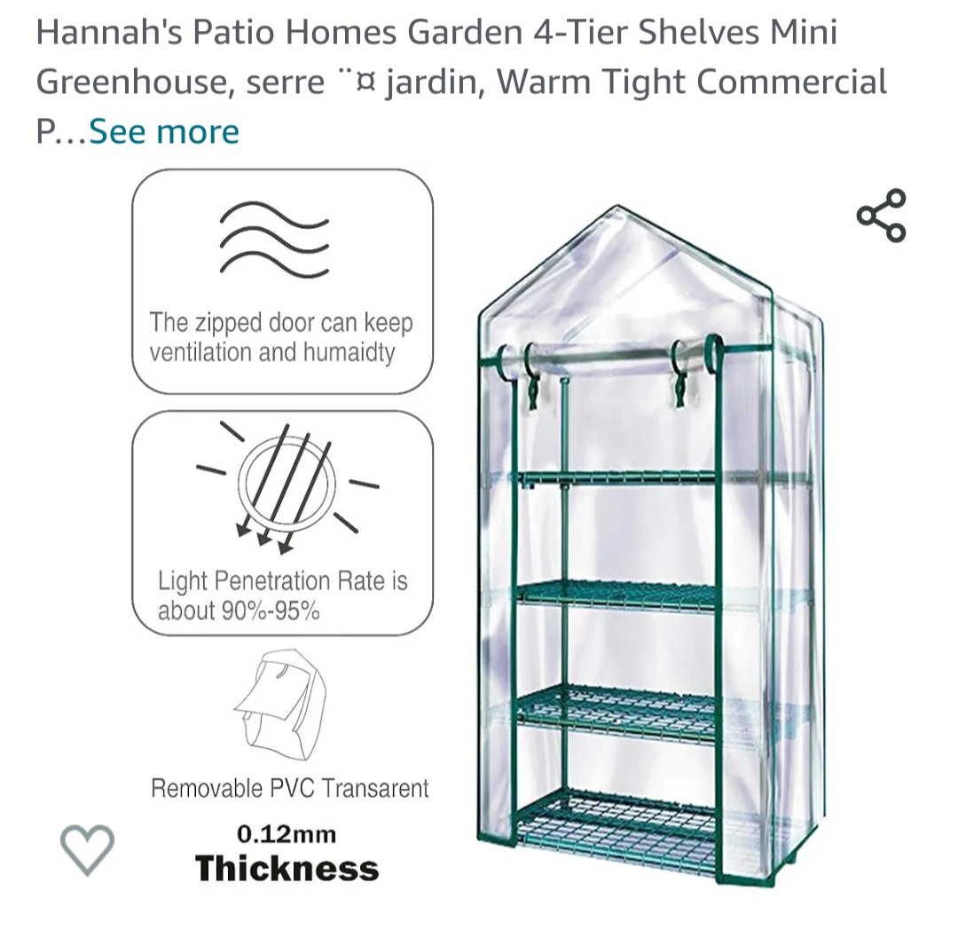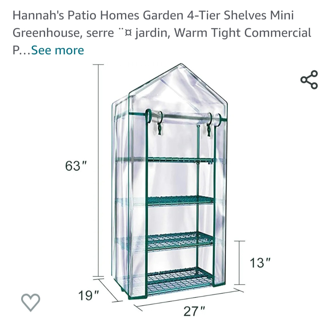 Patio Homes Garden 4-Tier Shelves Mini Greenhouse, serre ¨¤ jardin, Warm Tight Commercial PVC Indoor Outdoor Clear Greenhouse Plant Flower Grow Tent Zipper Roll Up Front 27 in. L x 19 in. W x 63 in. Details ColourGreen 4 Tier Greenhouse BrandHannah's Patio Item dimensions L x W x H68.6 x 48.3 x 160 Centimetres Door styleZippered, Roll Up Door Cover materialPolyvinyl Chloride (PVC), Plastic Frame materialPvc Closure typeRoll,Zipper,Zippers Number of doors1 Product Dimensions68.6L x 48.3W x 160H CentimetresSee less Please don't ask me for a discount, you are already saving tax and money, thanks for your understanding😁 Danforth and Eglington Pick up only