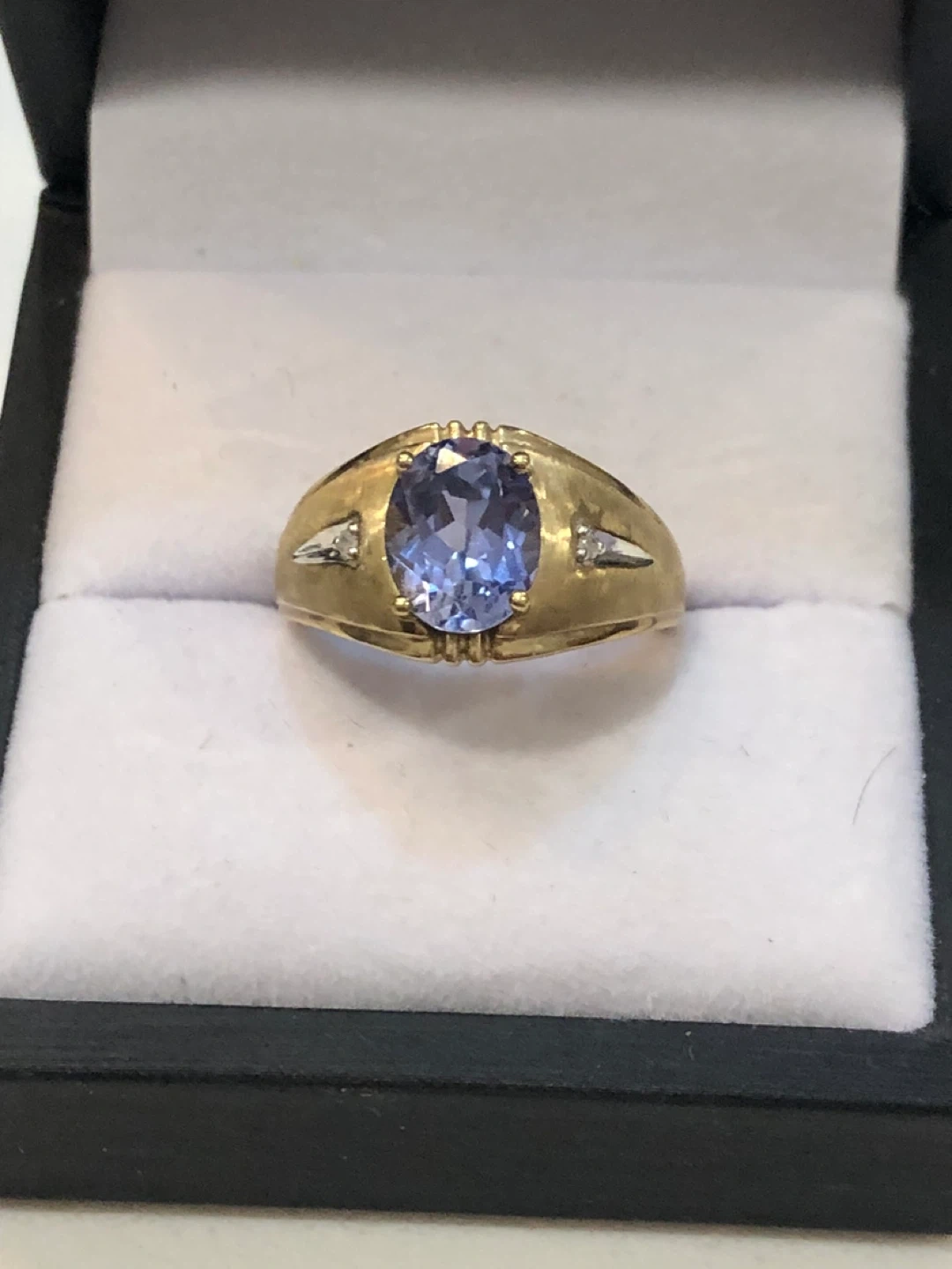 Selling a lovely 10k gold ring featuring a stunning diamonds, and Tanzanite stone. It's in New condition and comes in a box for safekeeping. A beautiful piece to add to your collection! Make an offer !