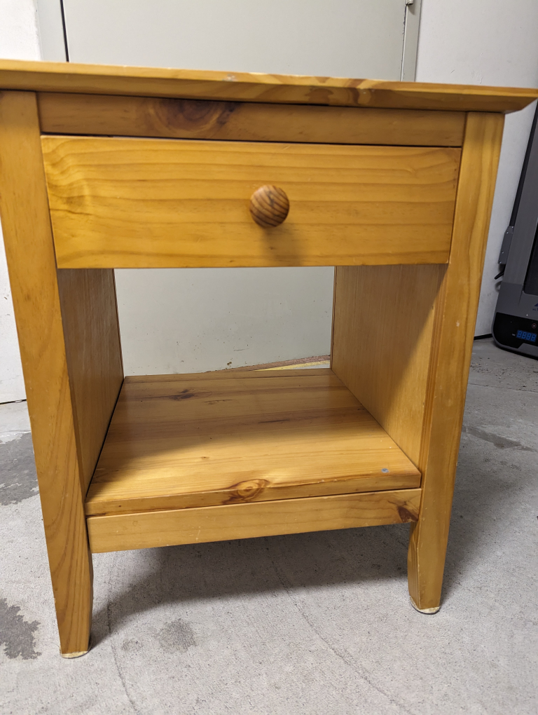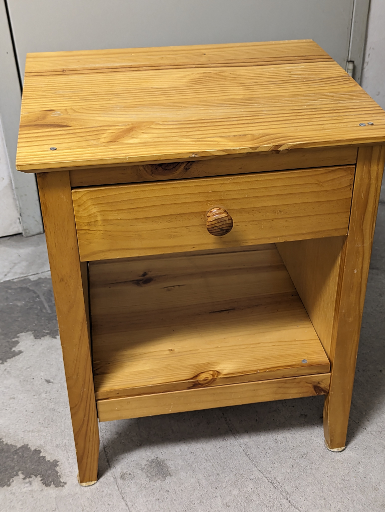 A wooden nightstand with a drawer, fairly self explanatory. It's quite solid yet light and easy to carry. Pickup at Bay and St. Joseph Street only (5 min walk from Wellesley station).