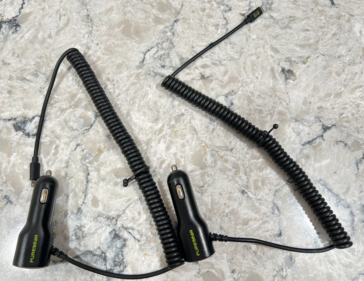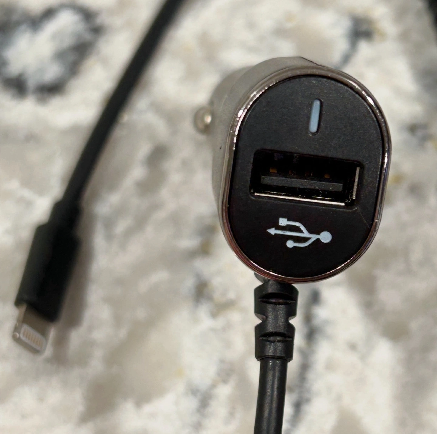 12V iPhone Charging Cord with Additional USB Port in Plug. Perfect for in the Car Excellent condition barely used Fits my IPhone 14 and worked with my old iPhone SE $7 each or take both for $10 See other listings for more electronic cables