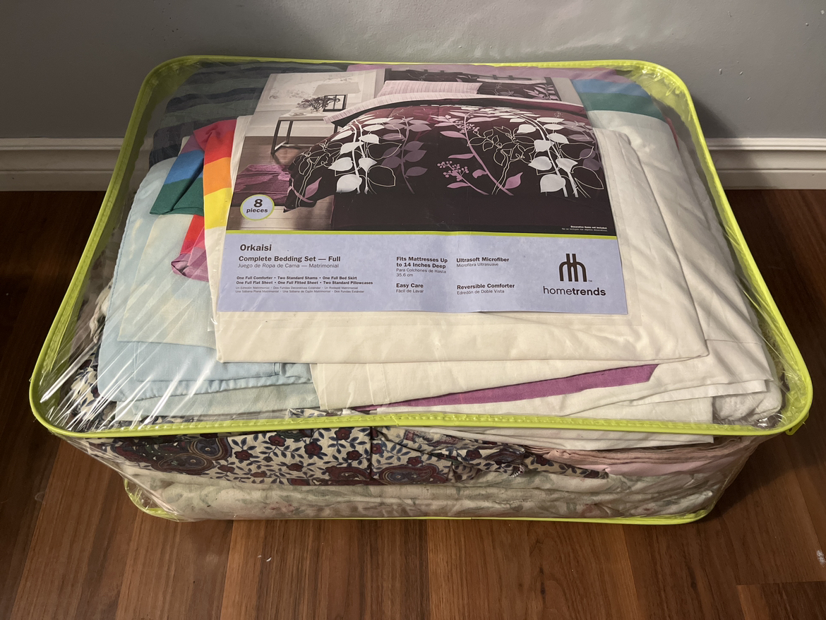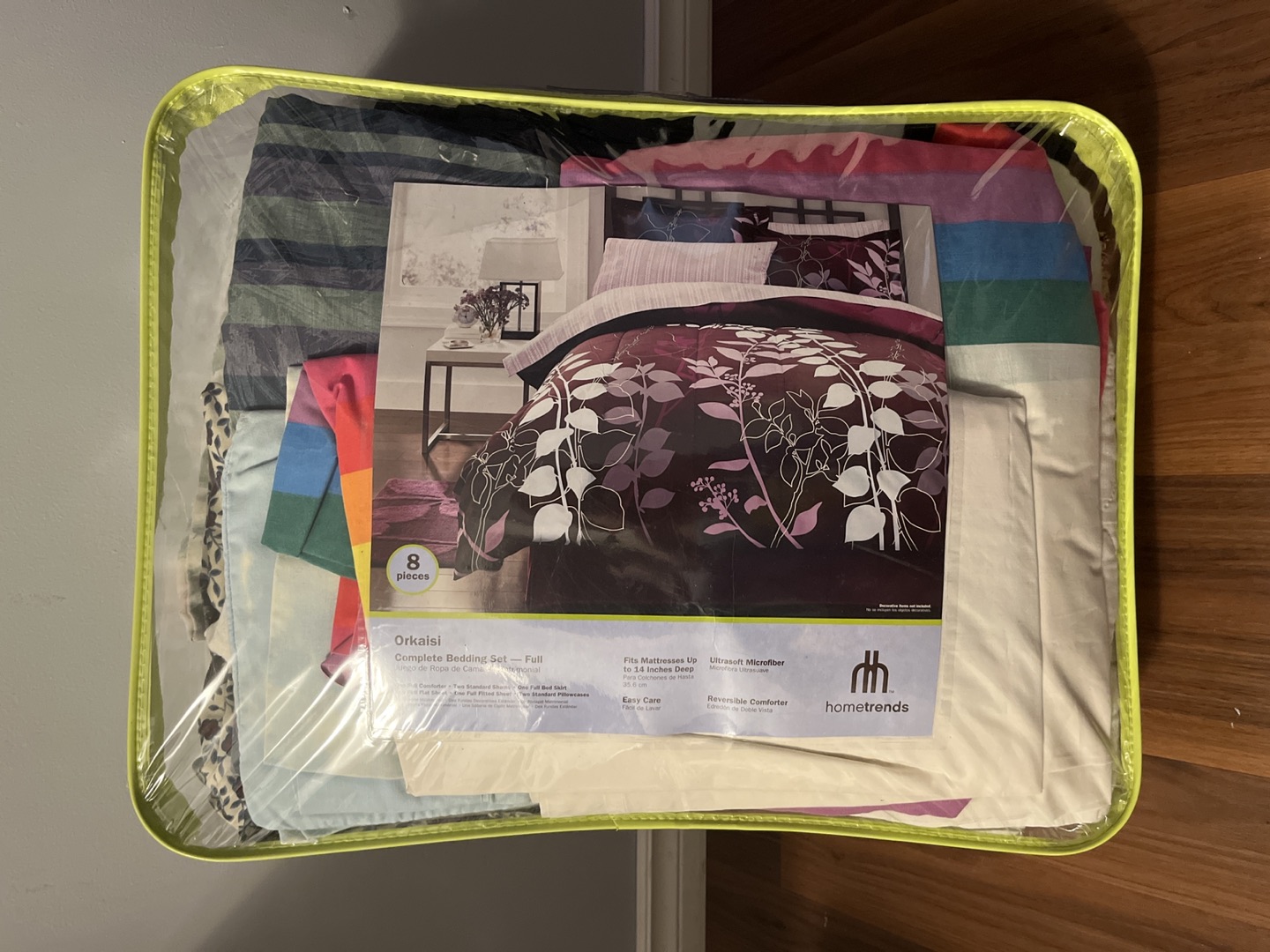 Different sizes of bed sheets, pillowcases and comforter. Pick-up only!