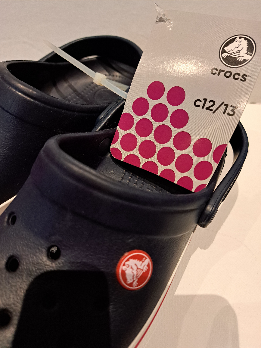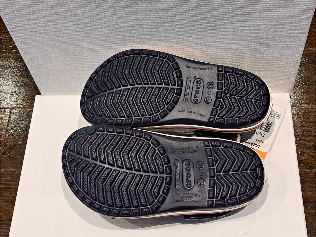 Crocs Kids' Crocband™ Clog Size: c12/13 Colour: Navy blue / white / red Brand new with tag #BNWT #Crocs Where to meet: (1) Near #MarkhamCathedral, or (2) Near #SherborneBloorEast #YongeBloor Item(s) need to find a new home. Don't forget to #CheckOut my other listings!