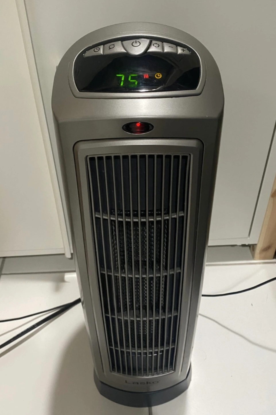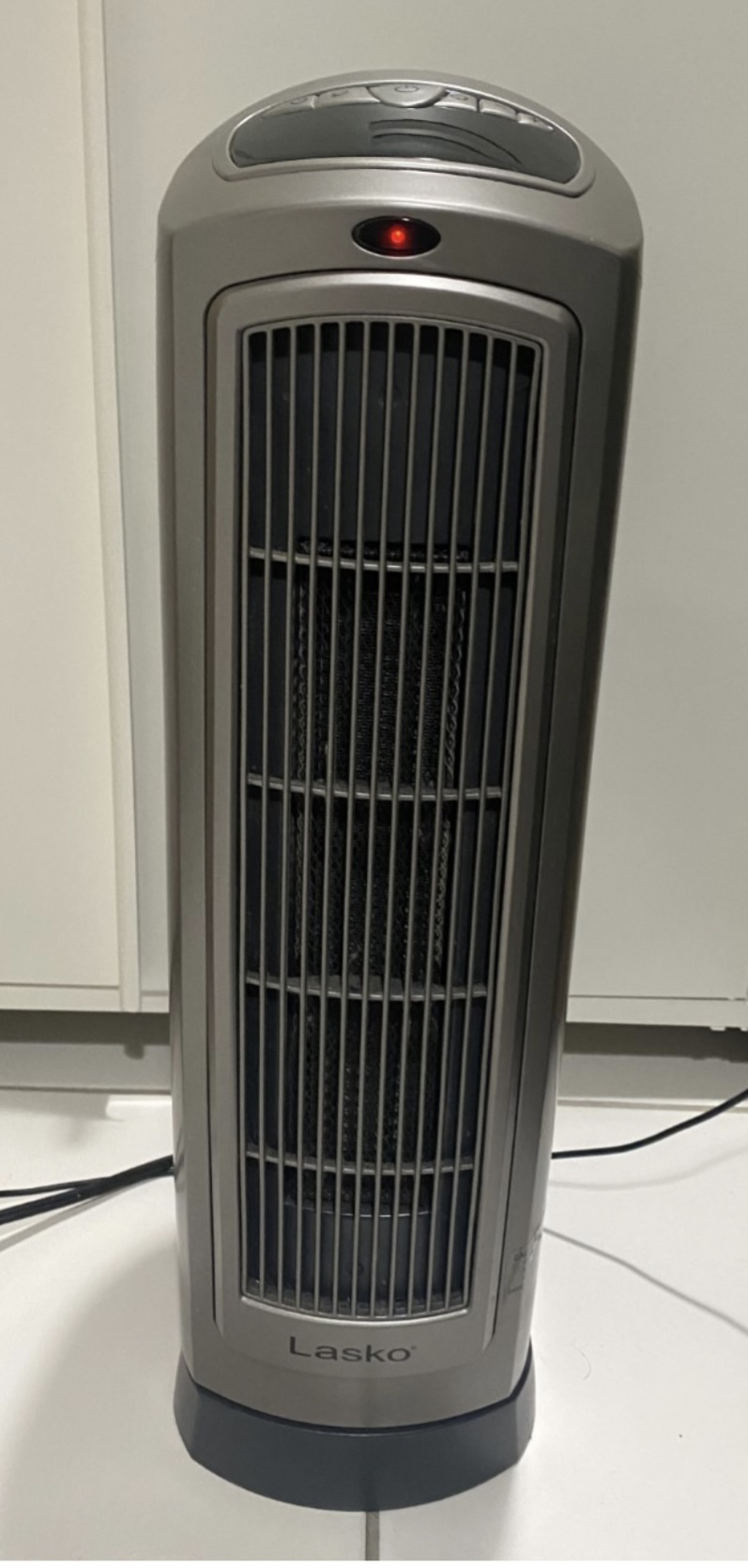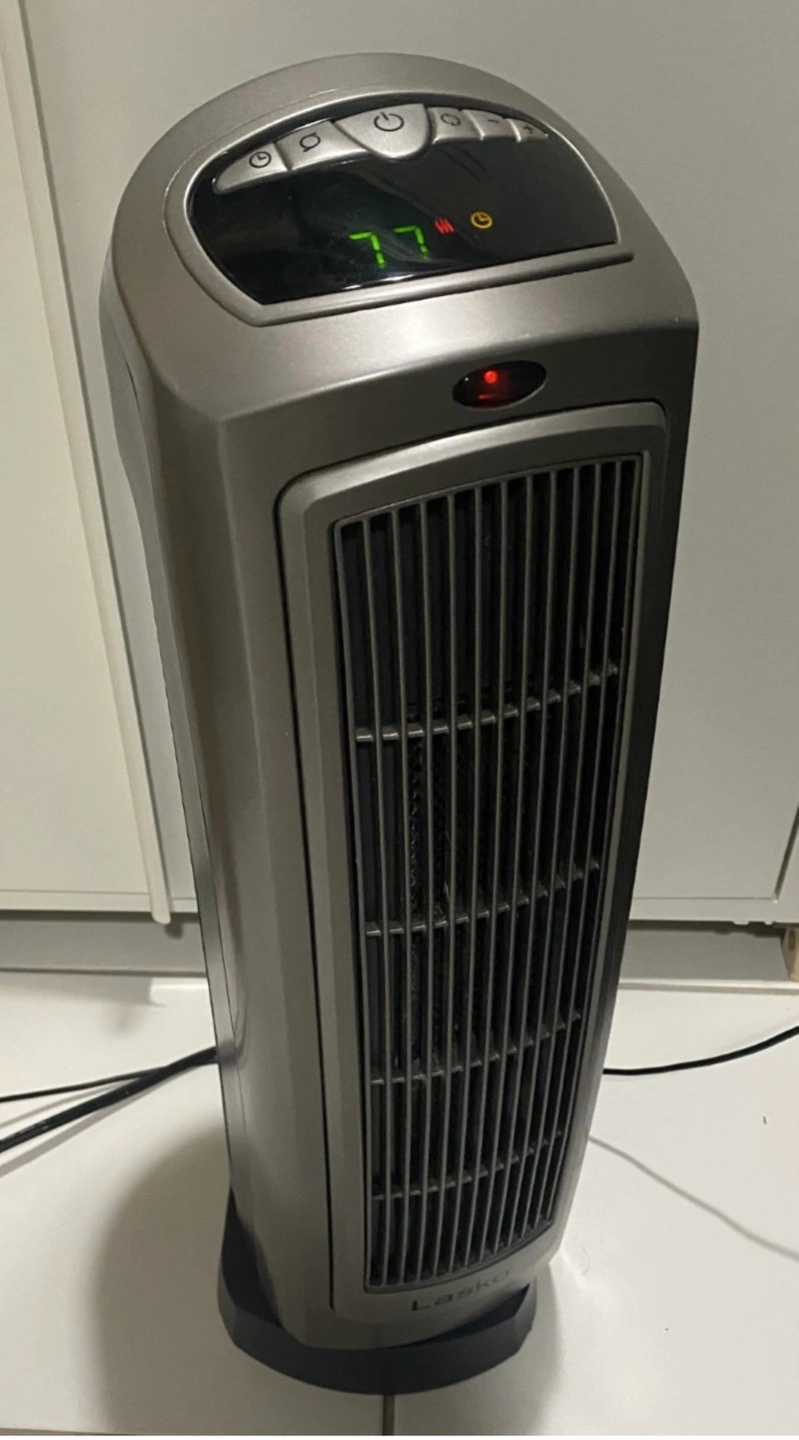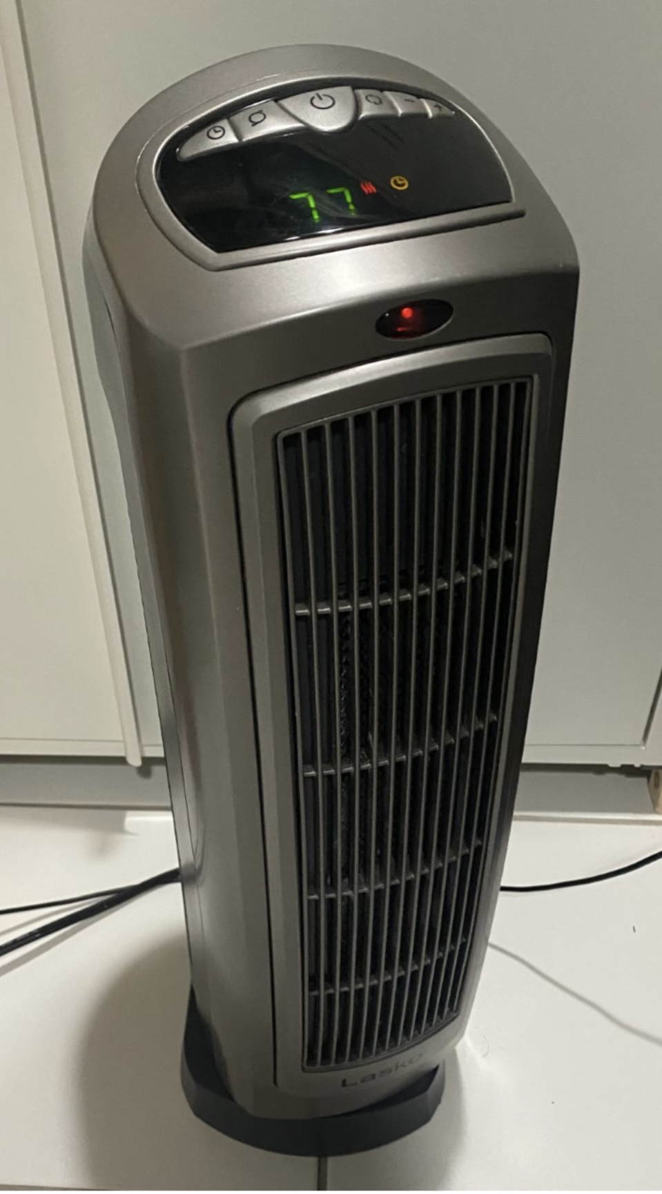 Lasko ceramic heater. Oscillating fan function, temperature control, timer function. Remote control included. EUC; works perfectly and heats up fast. Ceramic heaters are safe and cost efficient. Full specs: https://www.amazon.ca/755320-Ceramic-Digital-Display-Control/dp/B000TTV2QS/