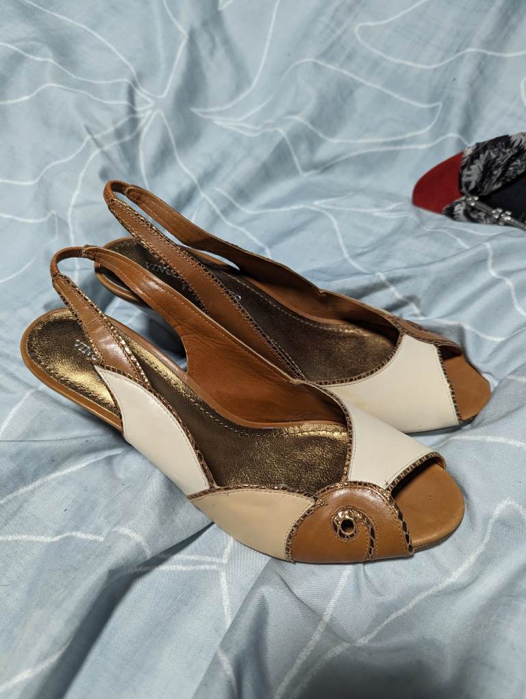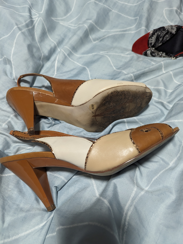 These lovely heels have been worn a couple of times but have no damage to their structured style.