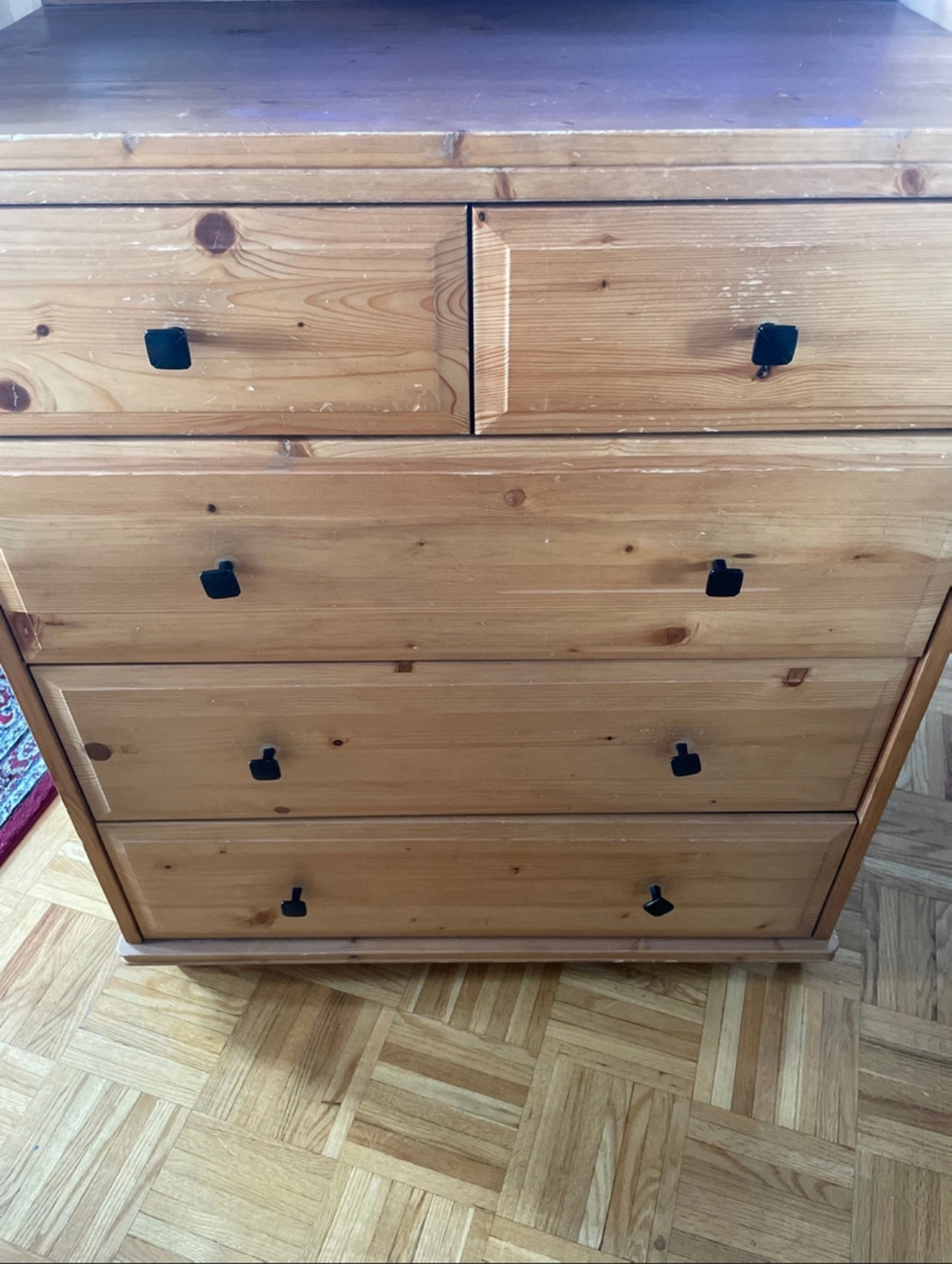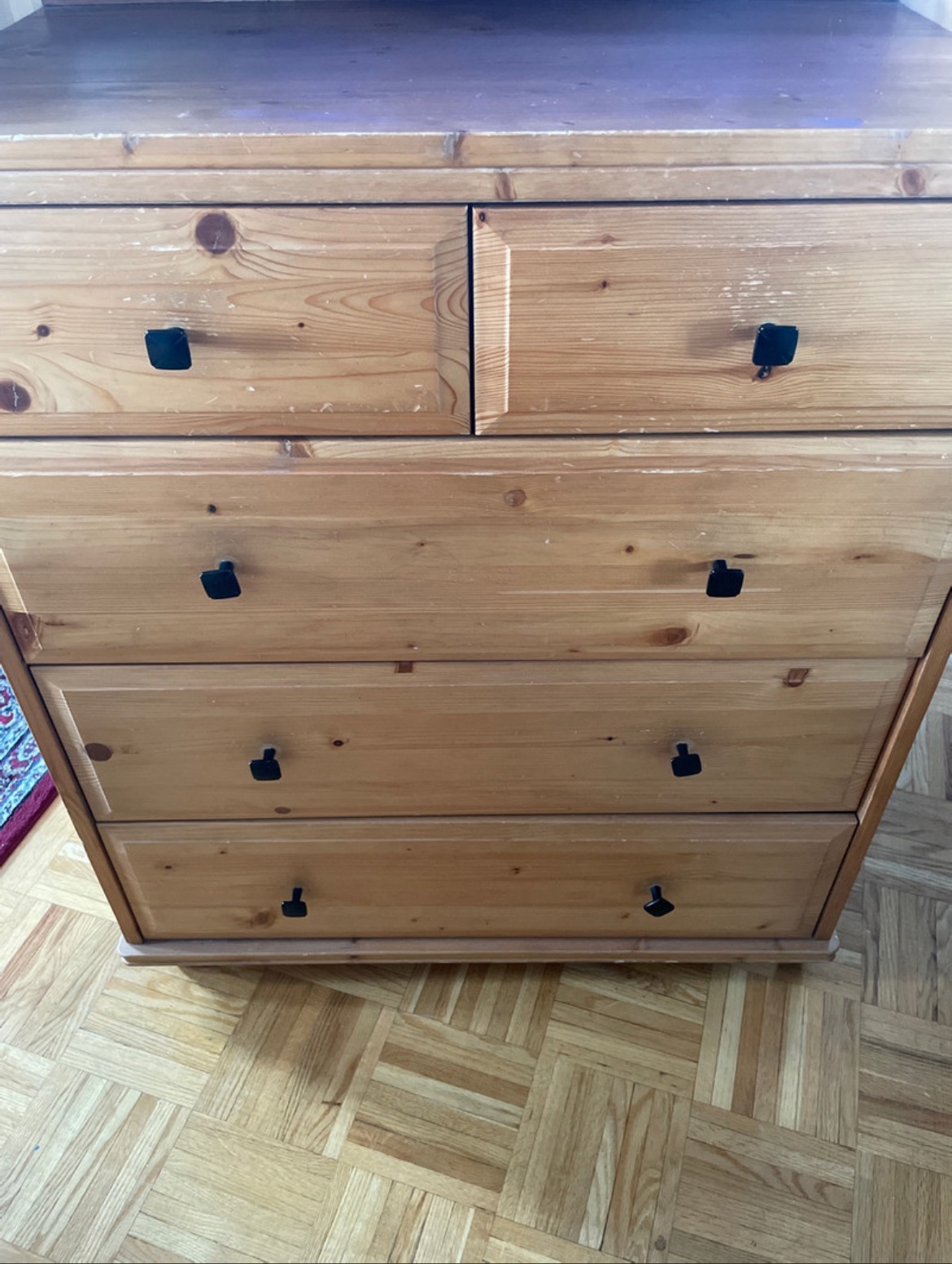 3 large drawers 2 small drawers Good condition No pets, no smoking On small wheels, easy to move