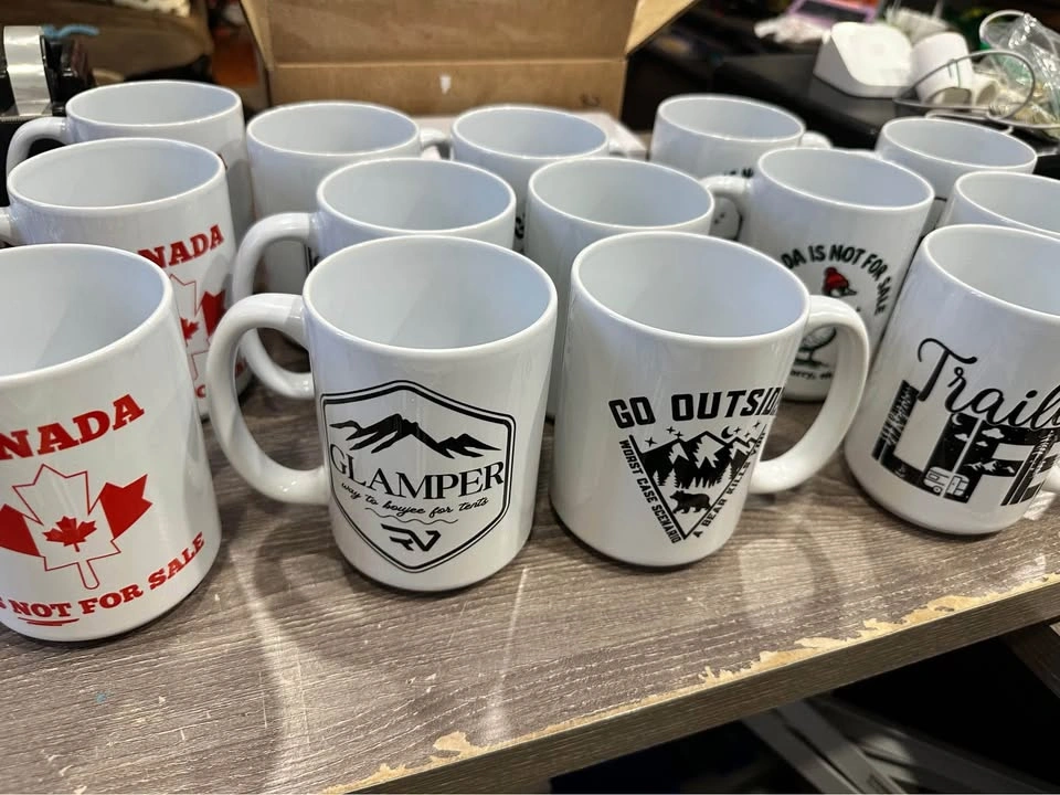 Dishwasher safe (top rack), Handmade mugs. Pre made are $9.99, Custom goes yp from there. Pickup Brock/kingston rd pickering