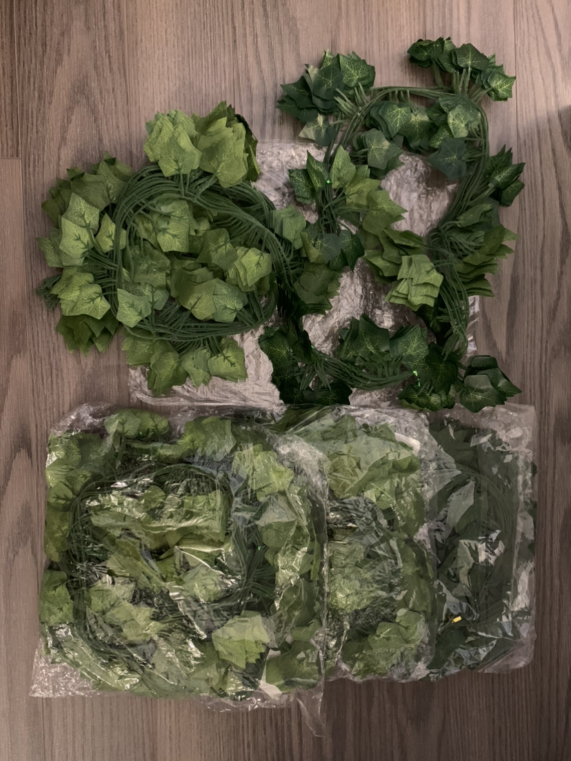 Brand new, 4 packets of faux ivy. Each pack has 12 strings of Ivy, each string 2m long so 24m in total. $25 for all four packs (96m)! Pick up near Spadina Ave & Front St W Cash only please!