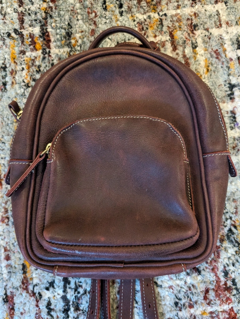 Burgundy Mini Chelsea Back Pack. Hand -rubbed Signature Vintage Tribe Leather.
