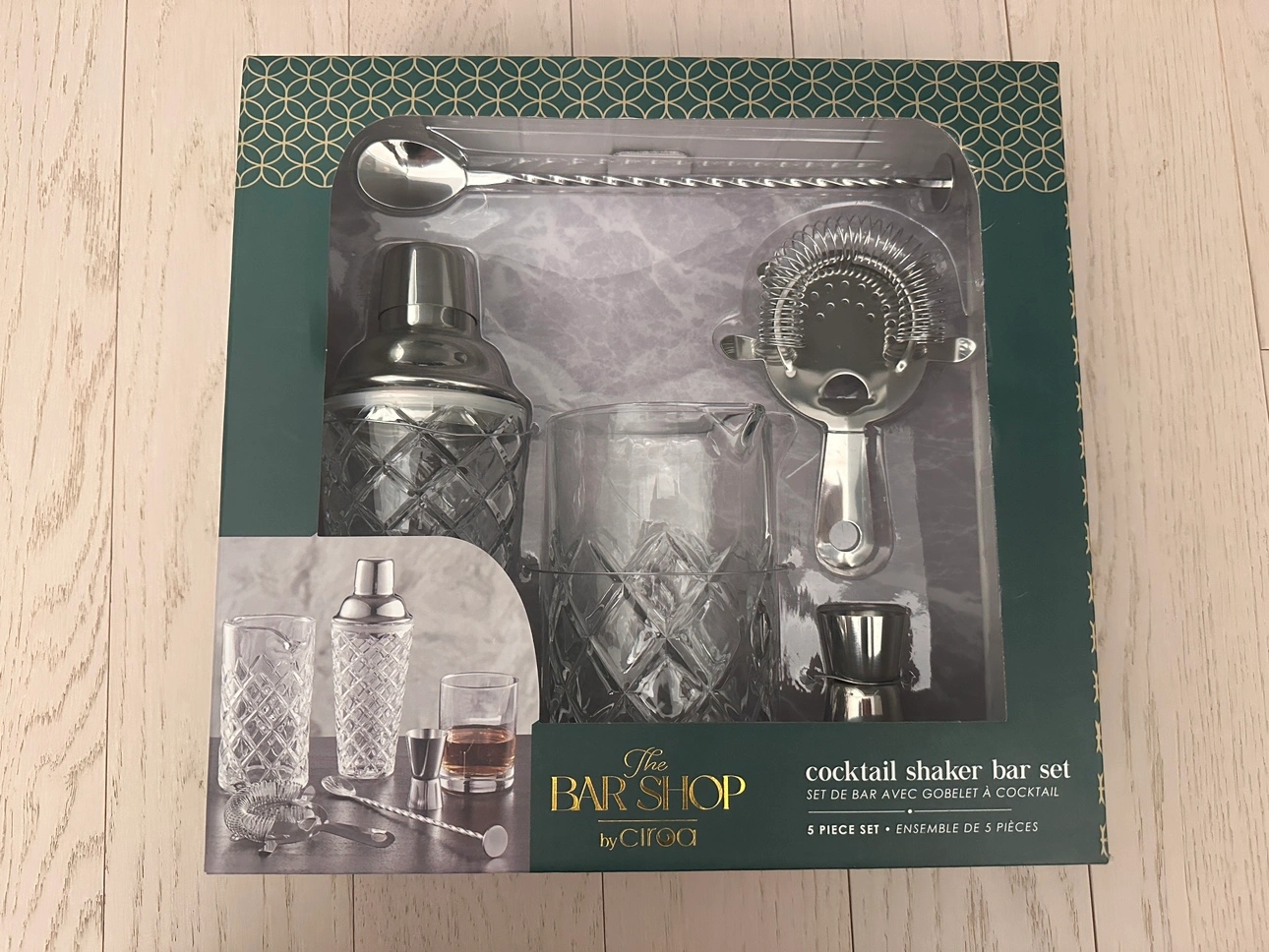 Open to offers, chat if interested! All new, box never opened Set of 5 includes: Cocktail shaker, jigger, stirrer, strainer, mixing pitcher All items handwash only. No dishwasher.