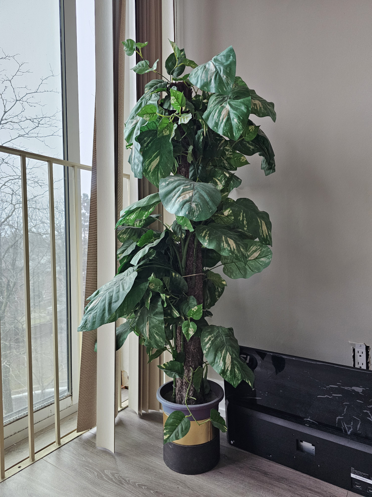 Blue Plant Pot with Wooden Stand