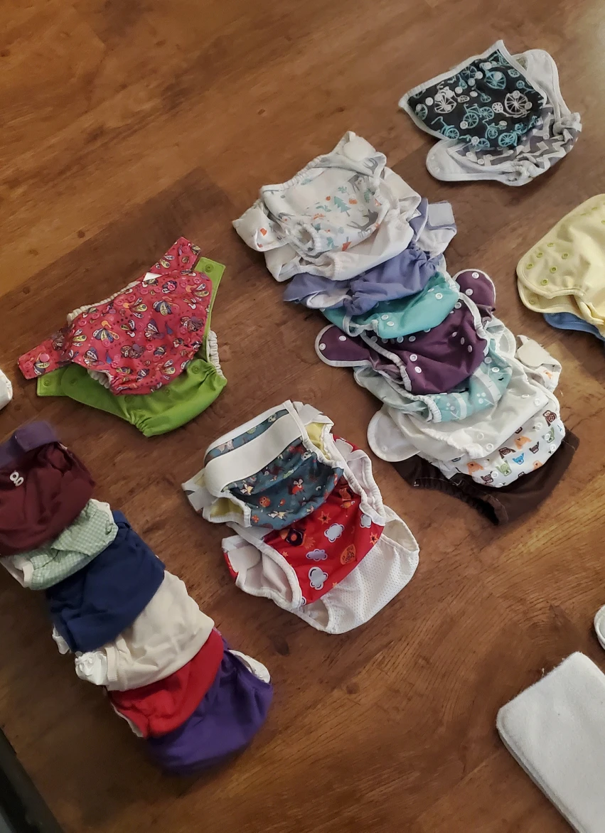 Big lot of various diapers with inserts. All in GUC. 26 diapers in total. gDiapers - 6 pcs (size M) + 7 inserts gDiaper - 1 pc (newborn) + insert Growia - 2 pcs (one size) + 9 inserts Bummis - 3 pcs (size S), 1 pc (size M) Thirsties - 7 pcs (size one) Swaddle Bees - 2 pcs (sizes, M and L) Planet Wise - 1 pc (size S) Tuck and Go - 1 pc (size S) Totsbots - 2 pcs (size one) Unknown - 2 pcs (sizes M and L) Additional Inserts: 12 pcs for sizes M and L 3 pcs other inserts Pick up - Scarlett and Eglinton.