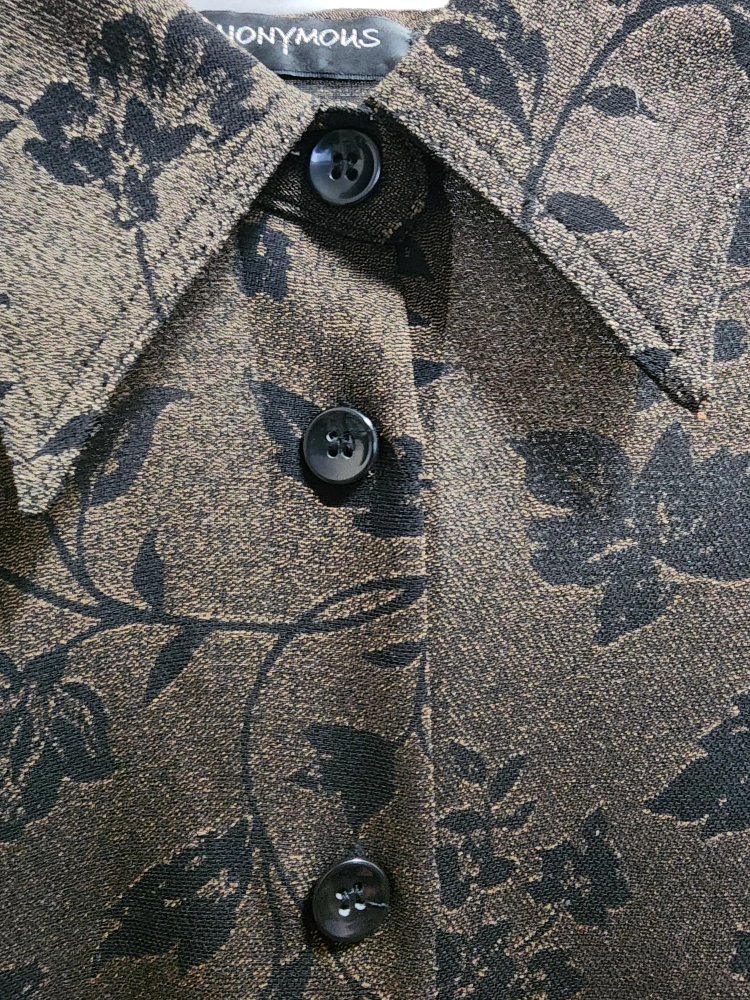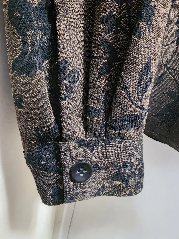 Brand new, tags removed. Has been hanging in closet covered, forgot ut was there. Beautiful chocolate brown with black floral print. Button up, button cuffs and has light shoulder pads. Again, brand new. Size 3X. Pickup address confirmed on pick up day. Cash only, final sale. Check out my other listings!