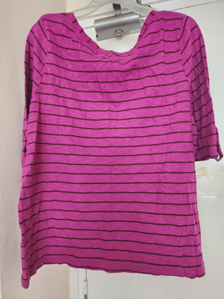 Brand new 3/4 sleeve top feom Joe Fresh. Fuchsia color with burgundy stripes. Please read and understand : Exact cash only, final sale, no deliveries. Main intersection Bathurst and Sheppard. If the ad is up then it is available!