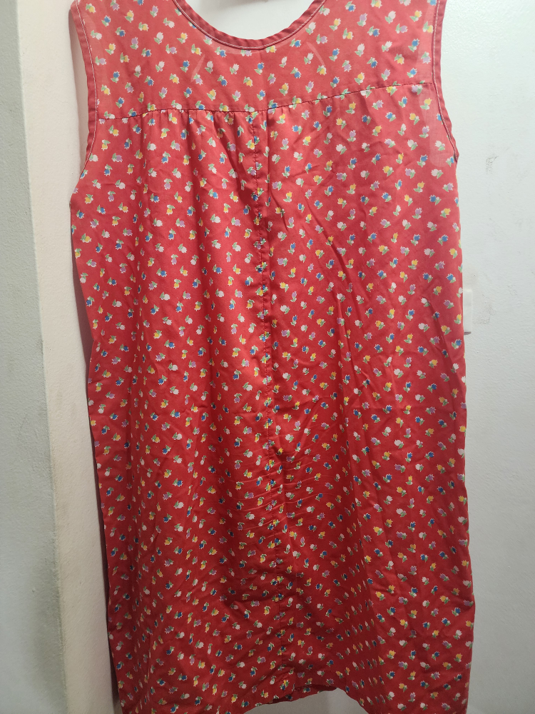 Tag that states size has been taken off. But it would most likely be a 2X. Material is non stretchy. Very cute sleeveless dress. Can be worn lounging at home, enjoying the garden, whatever your heart desires. Was only worn twice, was washed in cold water, and never in dryer. It has been folded in the closet taking space. Pickup address confirmed on pick up day. Cash only, final sale. Check out my other listings!