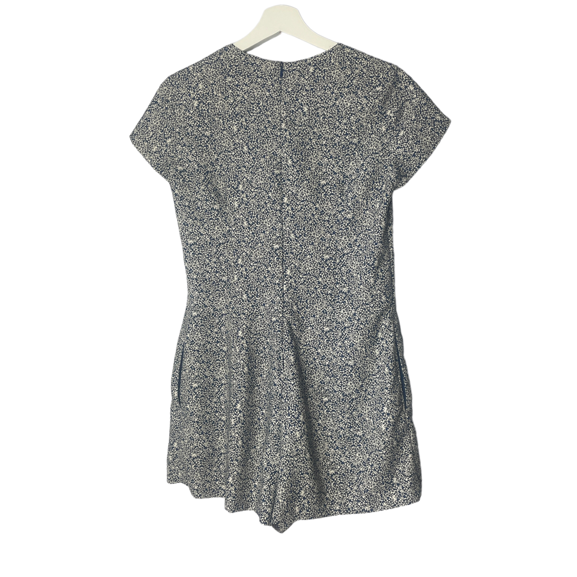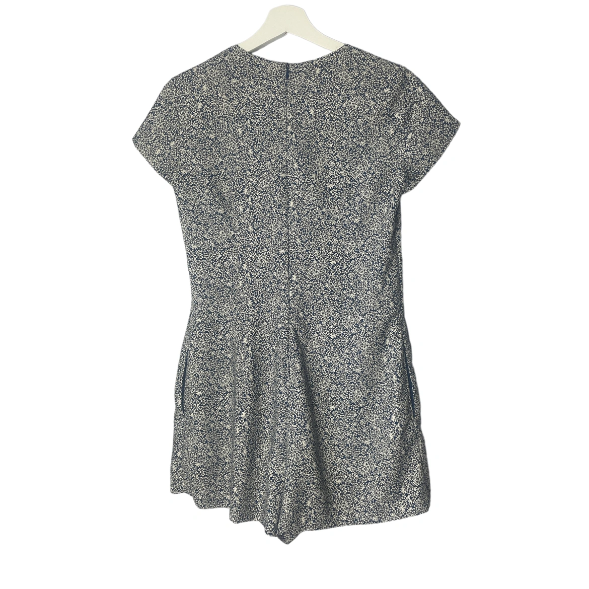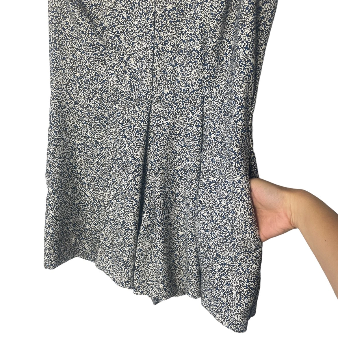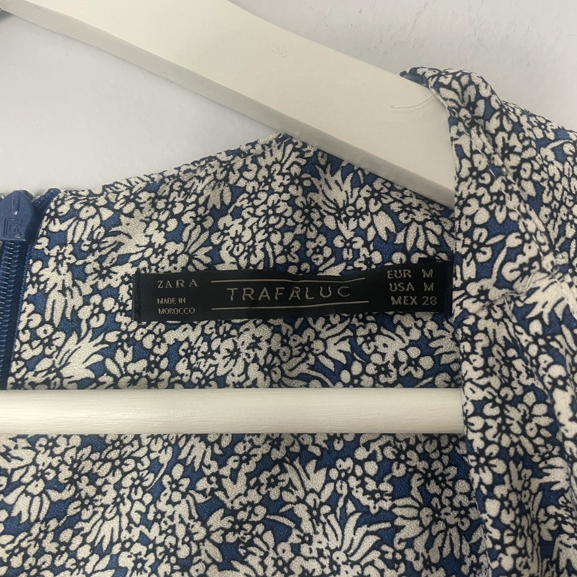 Zara Floral Blue Romper Size Medium Excellent condition V neck romper with pockets and beautiful white floral blue print. Short sleeves, zipper back. Length: 29.5" approx Pit to pit, front: 18" approx Waist: 15.5" approx Inseam: 2" approx More measurements available upon request.