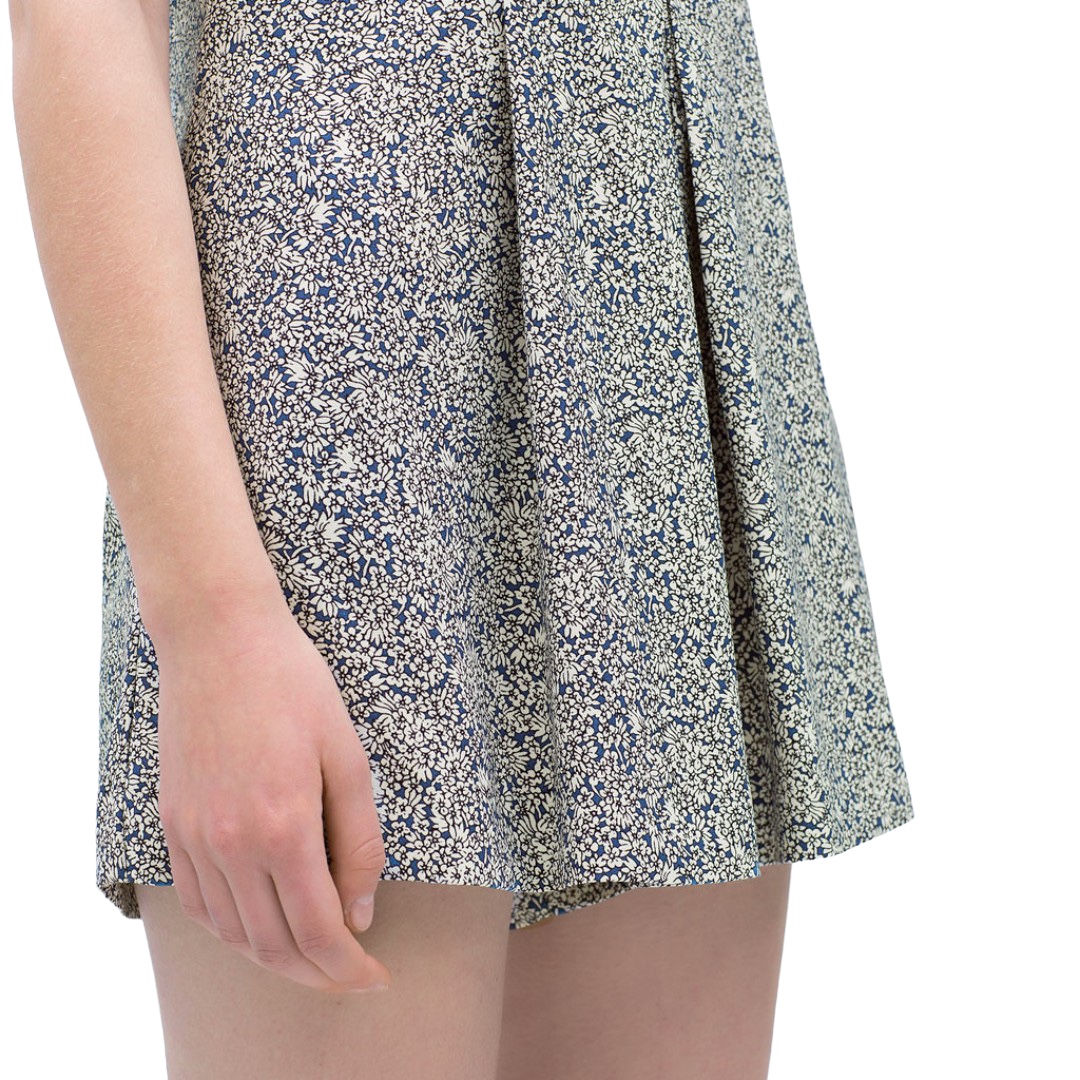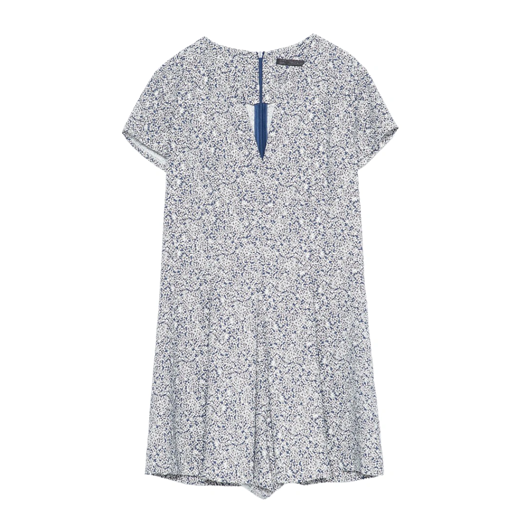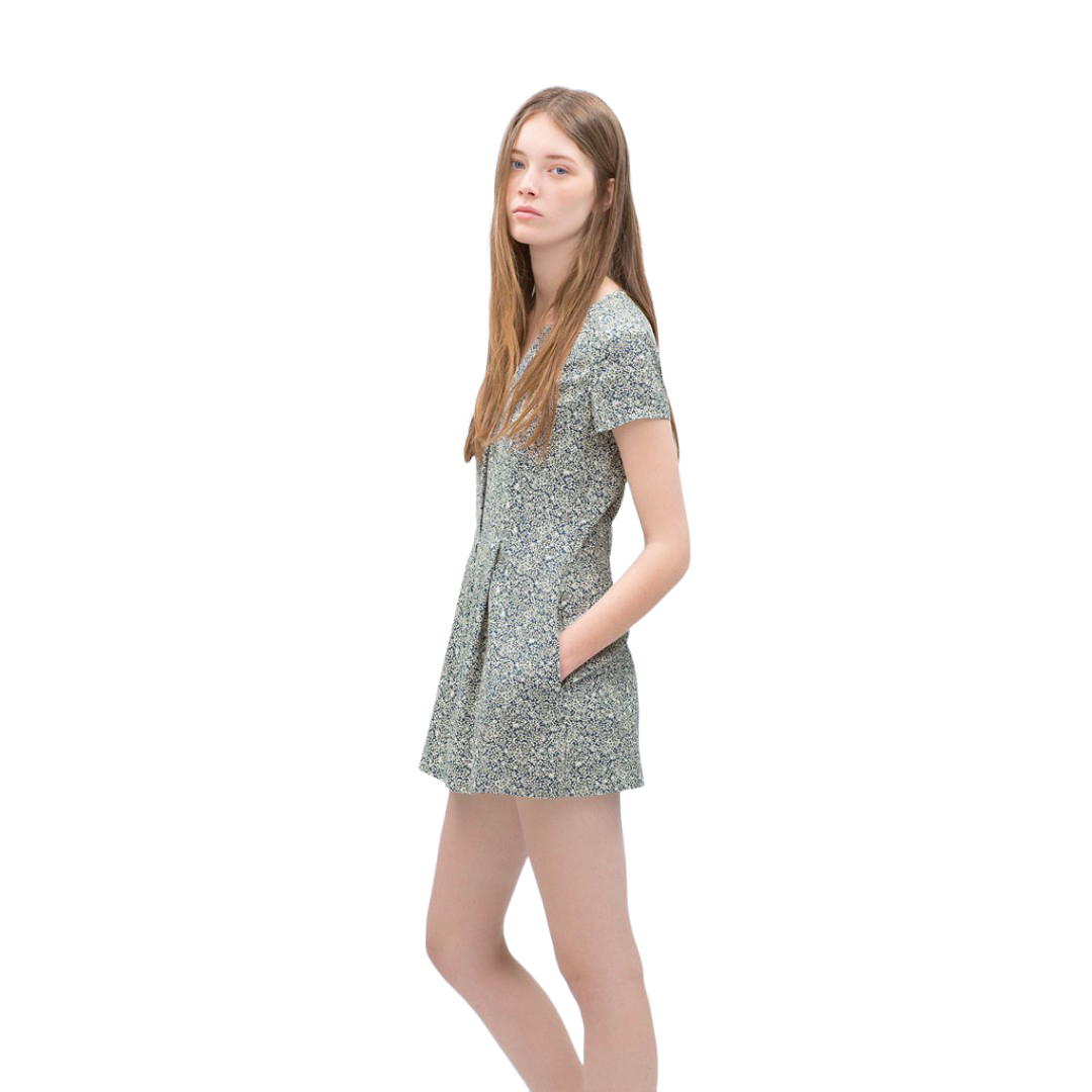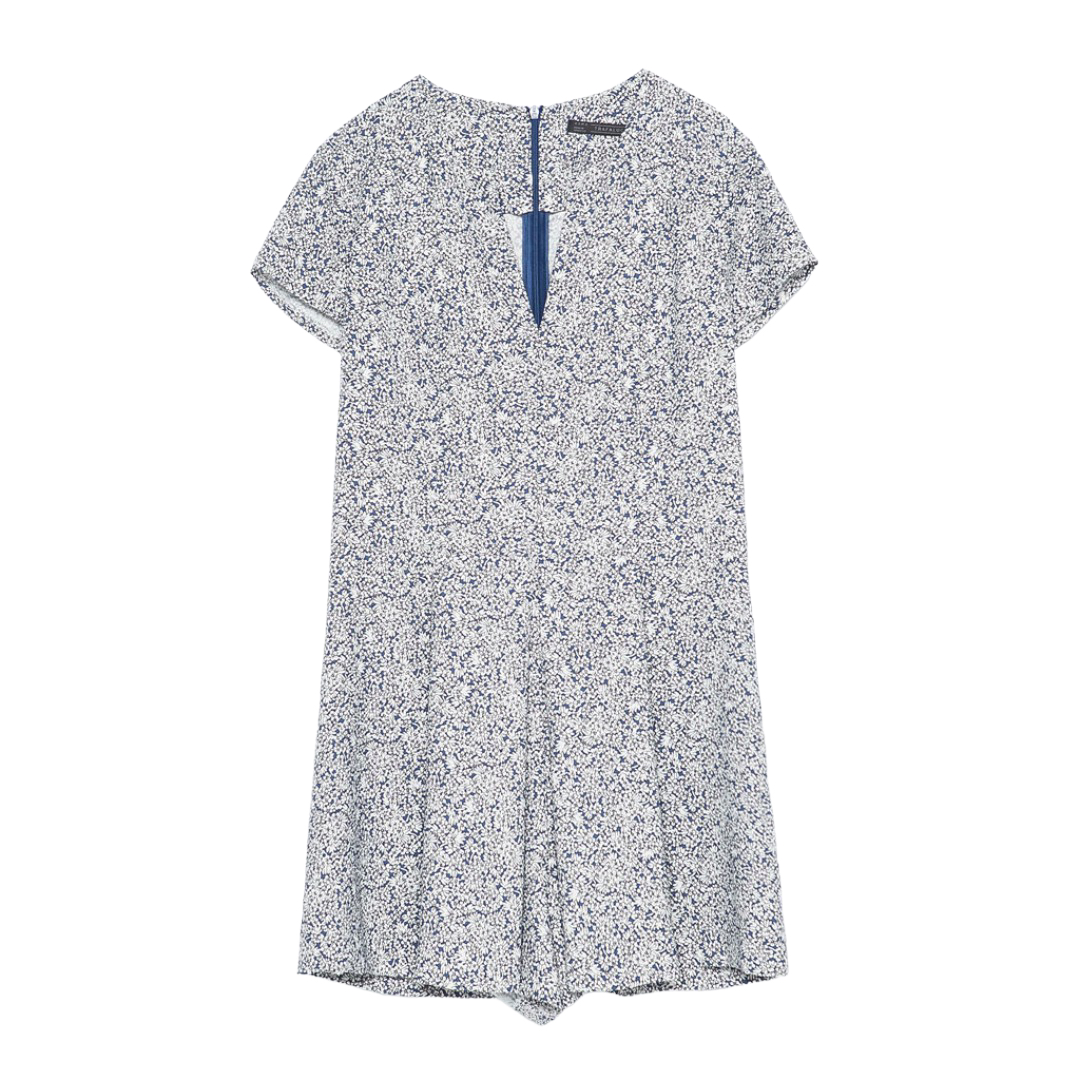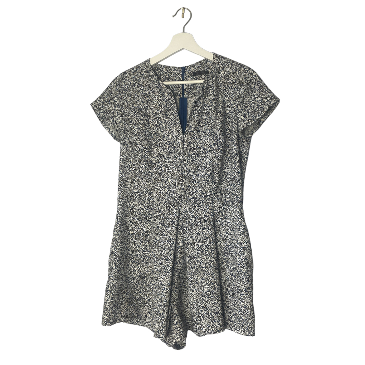 Zara Floral Blue Romper Size Medium Excellent condition V neck romper with pockets and beautiful white floral blue print. Short sleeves, zipper back. Length: 29.5" approx Pit to pit, front: 18" approx Waist: 15.5" approx Inseam: 2" approx More measurements available upon request.
