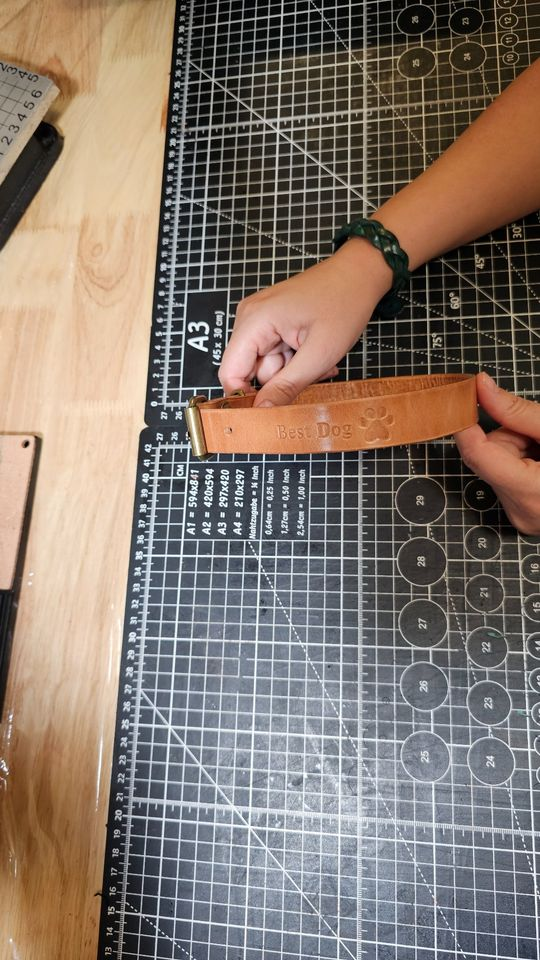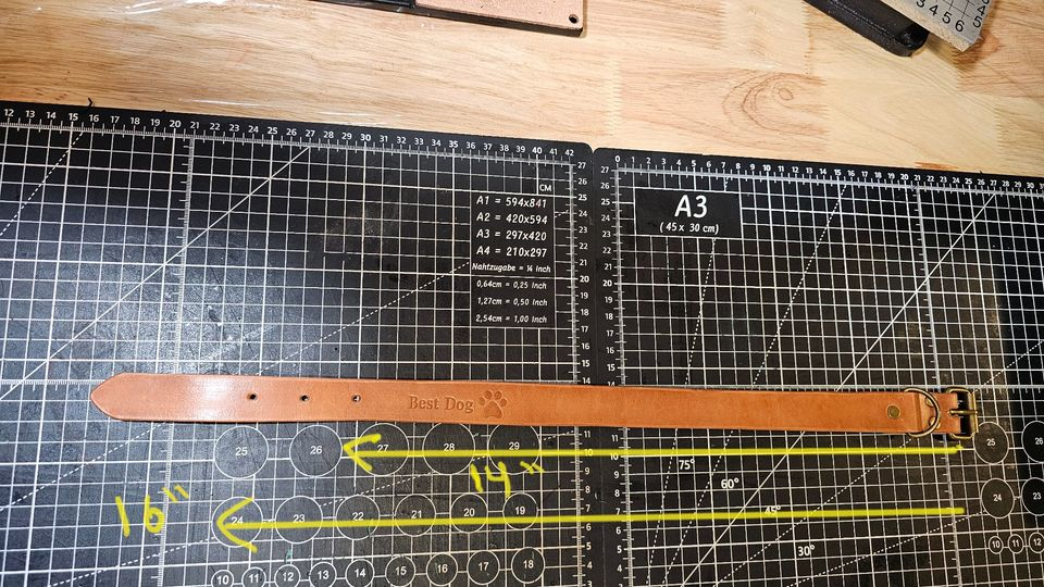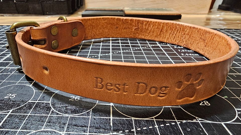 This full-grain leather pet collar is handcrafted from chemical-free 100% natural veg-tanned leather. ๐ Collar width: 1 inch smallest hole measures 14 inches, and the largest one is 16 inches