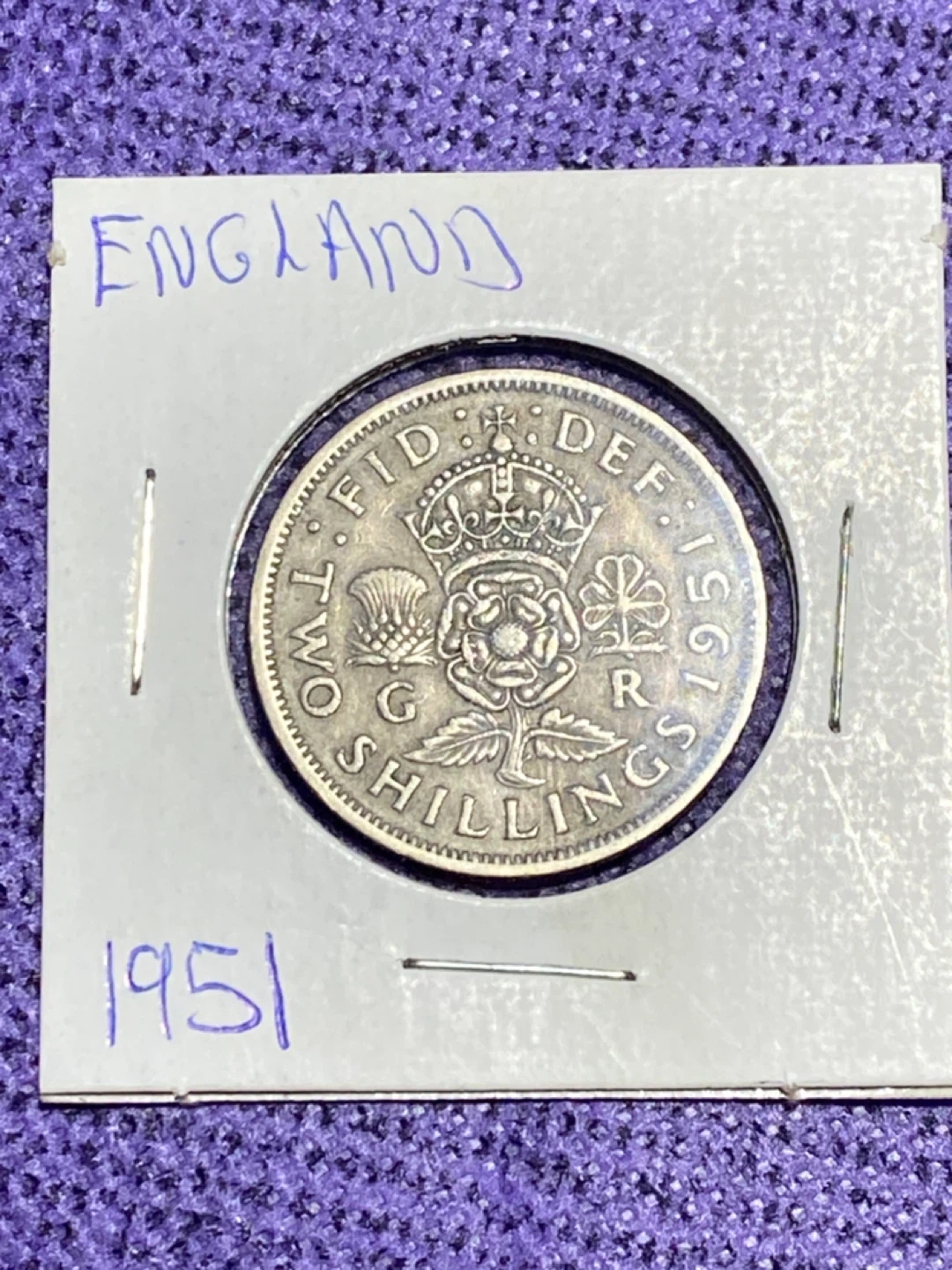 Selling a 1951 England Two Shillings coin. It's in great condition for its age! A nice piece for any coin collector