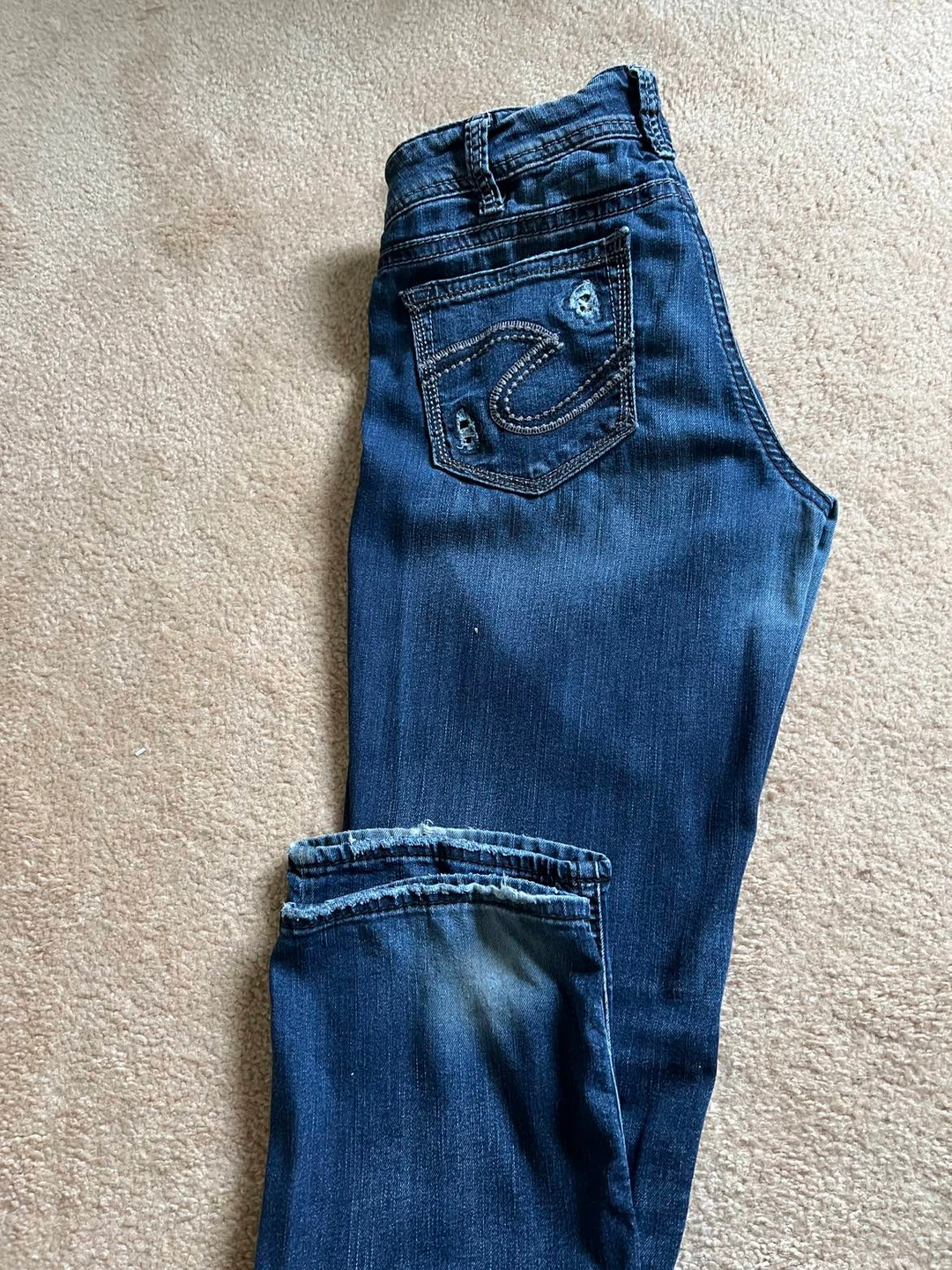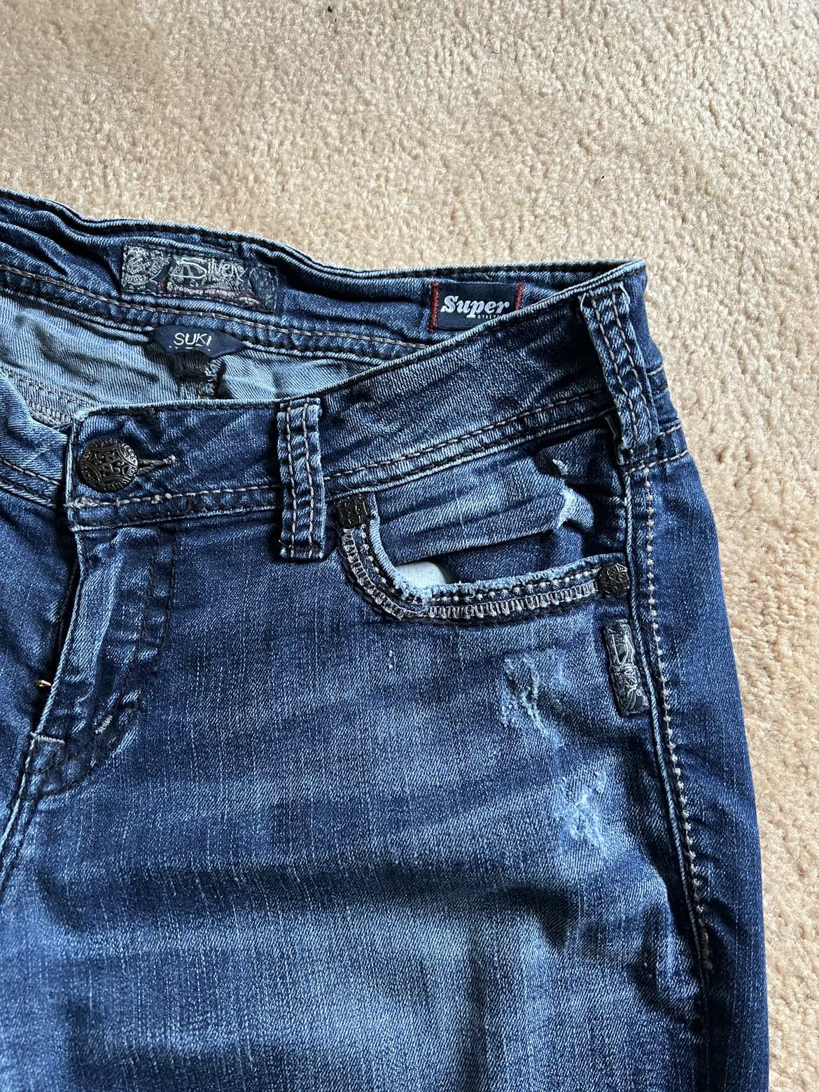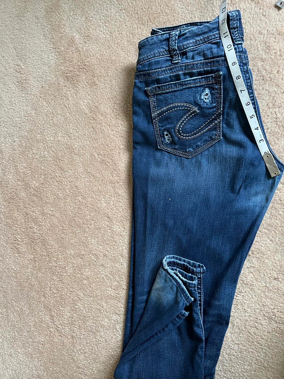 Silver Suki Mid Straight Jeans W 30 L 32 Distressed 83% Cotton 16% Polyester 1% Elastane 13” raise Smoke free home Always been hung dry