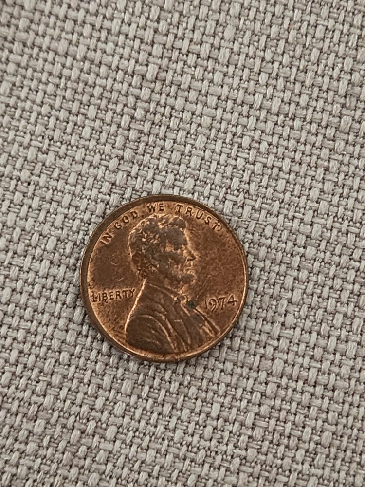 Vintage 1974 one-cent coin. Shows minor wear. Collectible.