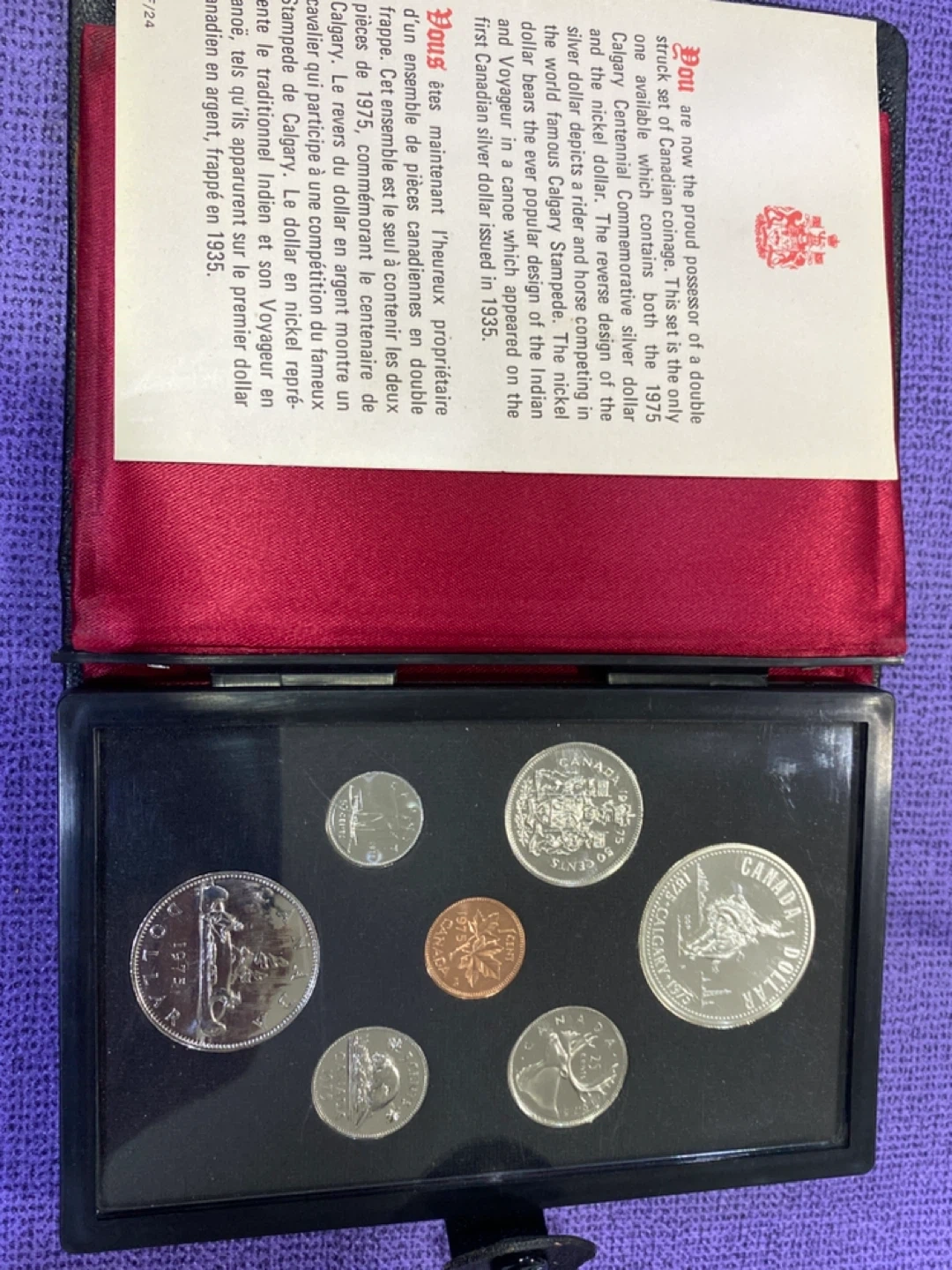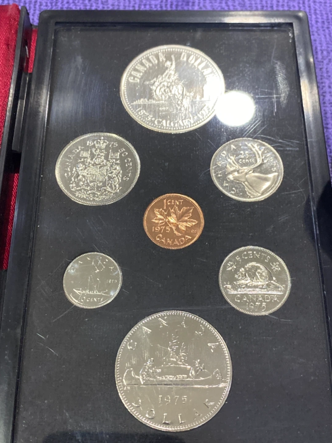 Selling a 1975 Royal Canadian Mint coin set! It comes in its original case and includes all the coins from that year. A great piece for any collector of Canadian currency