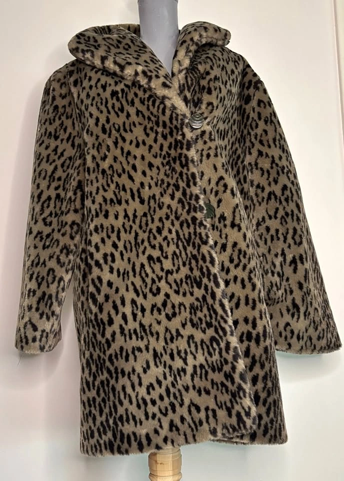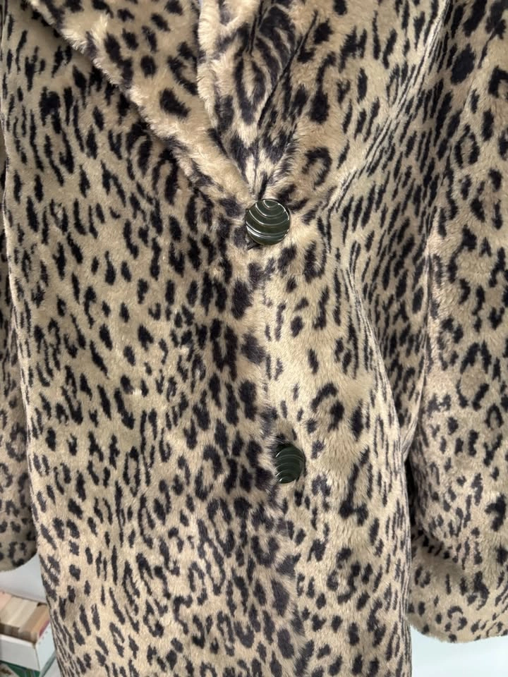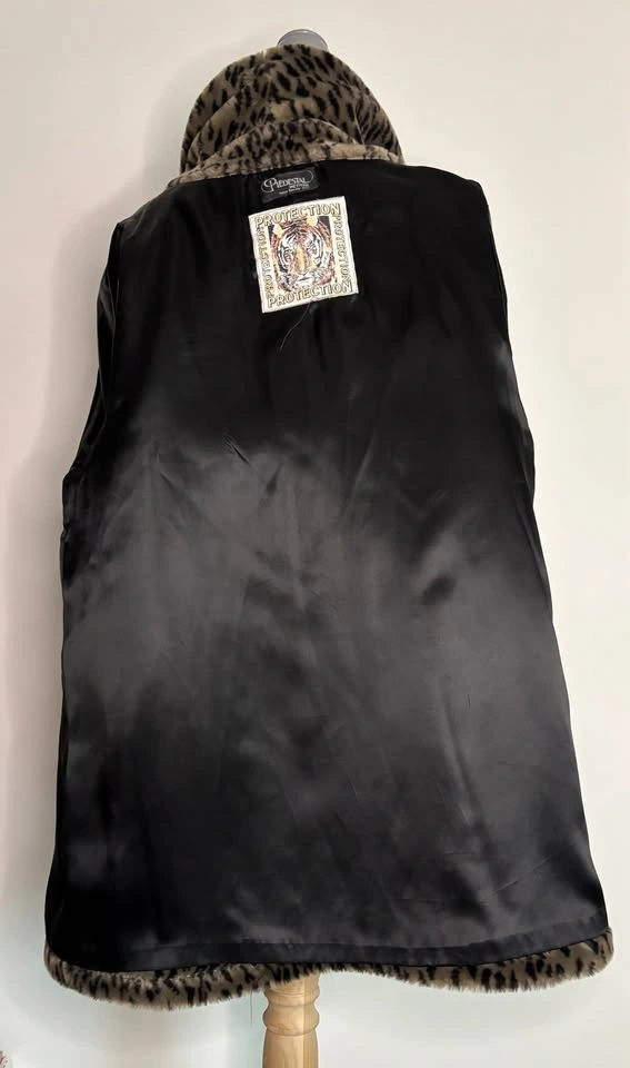 Step back into the fabulous 1980s with this stunning made in Canada Piedestal Leopard Print Faux Fur Coat. The bold, chic, and eye catching pattern on this vintage-inspired coat is a spectacular leopard print that resonates with retro flair. The soft, luxurious faux fur finish along with the classic leopard print is perfect for adding a noticeable look to any casual or more formal outfit. The 2 button front is accompanied by 2 hand pockets for added storage of your essentials and to help keep your hands toasty when the chill picks up. The 100% acrylic coat is augmented with a nylon liner. Ideal for parties, nights out, or for you to make a statement, this quality, cruelty-free designed women's coat is sure to turn some heads. This 1980s Piedestal Leopard Print Women’s Faux Fur Coat is a size women's 7 and is in excellent condition. For measurements, please see the attached picture in our listing. Local pickup is in Etobicoke near Islington and The Westway.