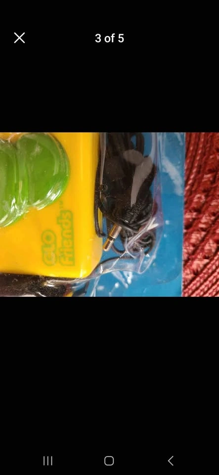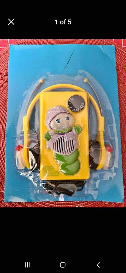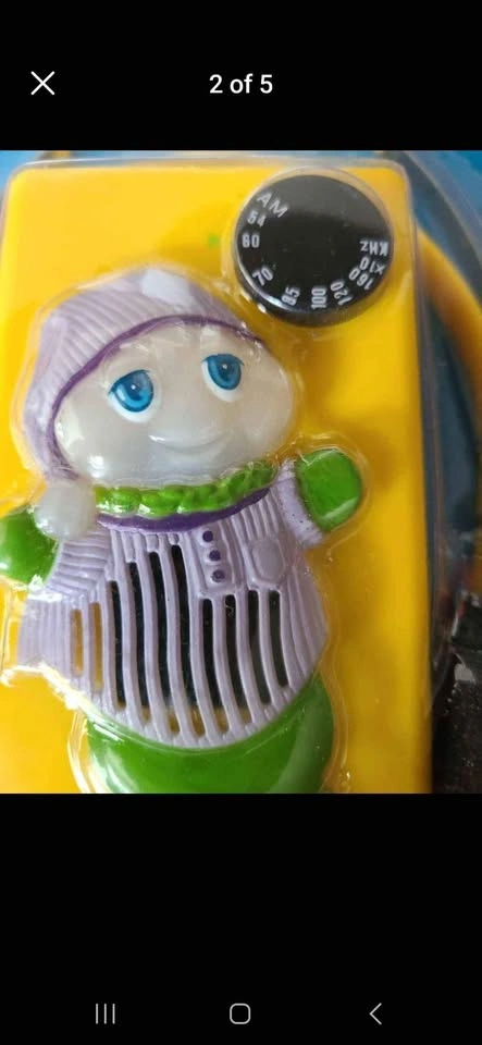 1985 Hasbro Bradley/Durham Industries Glo Friends AM Radio with matching headphones. Radio is yellow, with a raised musical Glo worm character on the radio, and Glo cricket on the headphones. The characters on this radio probably glow in the dark!