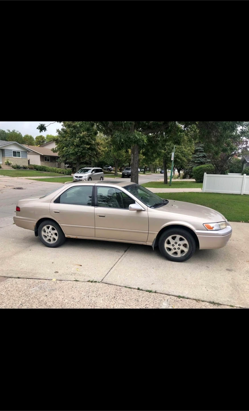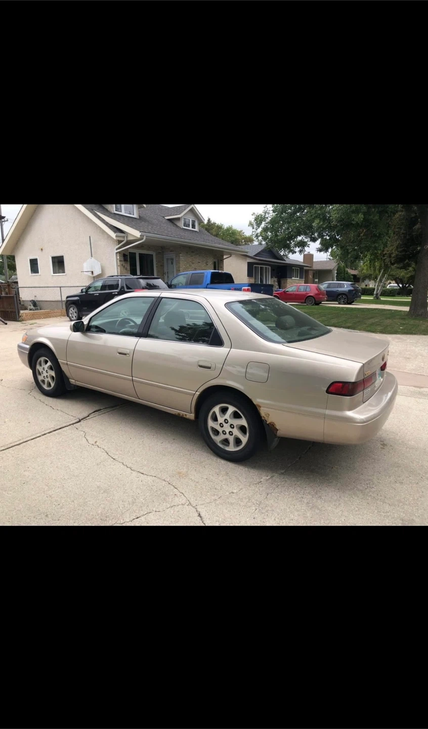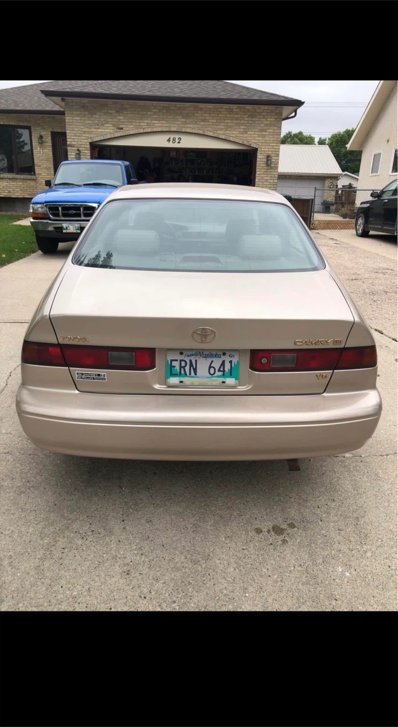 1999 TOYOTA CAMRY XLE TOP OF THE LINE MODEL AS IS CONDITION!! NOT SAFETIED!!! ALL HIGHWAY KMS!! CLEAN TITLE NO ACCIDENTS FRESH OIL CHANGED (SYNTHETIC) ALLOY RIMS!! REMOTE STARTER INSTALLED!!! BLOCK HEATER INSTALLED!! AFTERMARKET STEREO WITH BLUETOOTH!!! WINTER READY!! 3.0 L V6 Strong Engine!!! Automatic Transmission!! Smooth Engine & Transmission!!! Ice Cold AC!! Strong Heat!! Sunroof!!! Leather Seats!! Power Windows & Mirrors. FM AM & CD Player. Cruise Control. Huge Trunk Space. Immaculate interior Great Fuel Economy. 800+ KM Range Full Tank. Premium sound system Spare Wheel Included. Second Owner Since 2015!! 2 keys & 1 remote!! 318,xxx kms!!! What’s Needed For Safety: Rust Repair. Small Exhaust Leak. Valve Cover Gasket. Wide leg Room and comfortable drive Well Maintained, Clean Car. Price negotiable in person. Serious buyers only please.