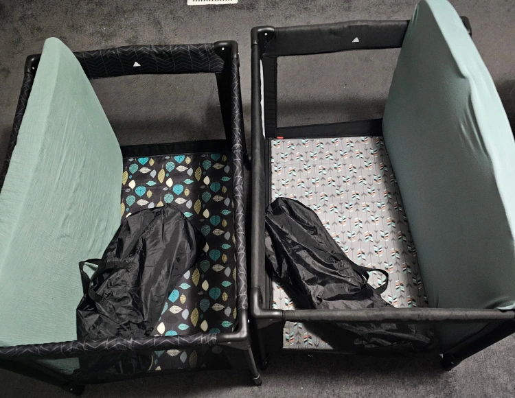 Selling a set of two Cosco playards. These are great for twins or for having a spare at grandma's house! They come with their travel bags and fitted sheets. plus playard organizer and mattresses, jst incase your baby doesn't like sleeping directly on it like mine did. $50 each.