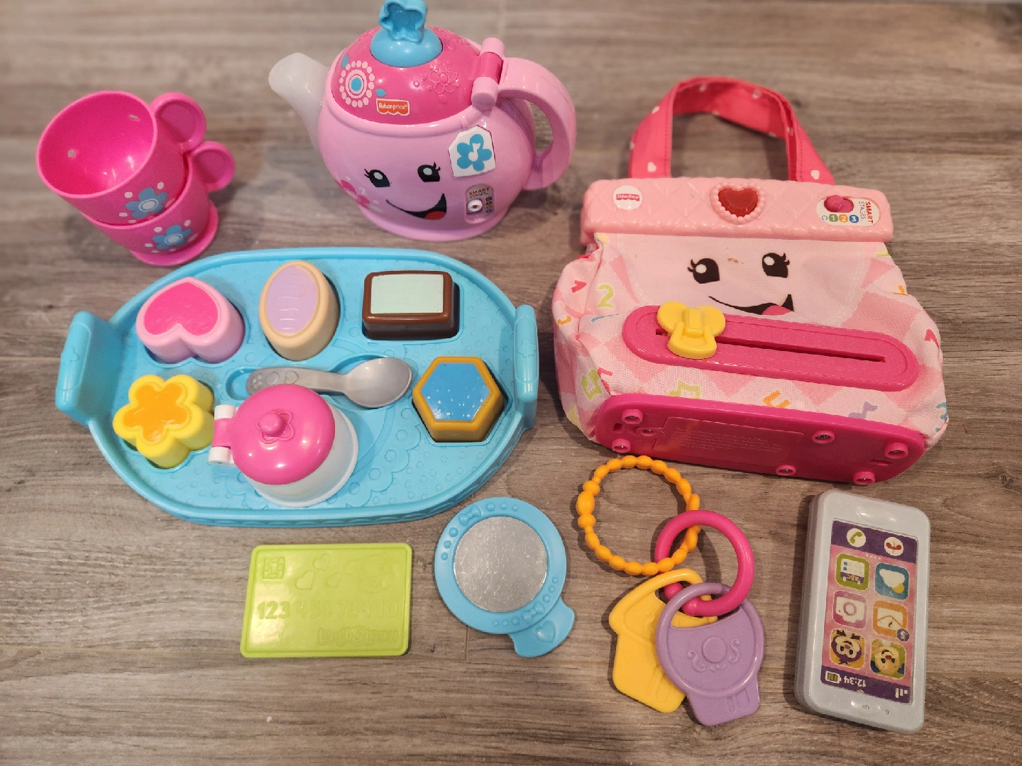 Includes both the Tea set (2nd photo) and the Purse set (3rd photo), with all the accessories shown. Please see photos for details. Pickup near Major Mackenzie & Bathurst