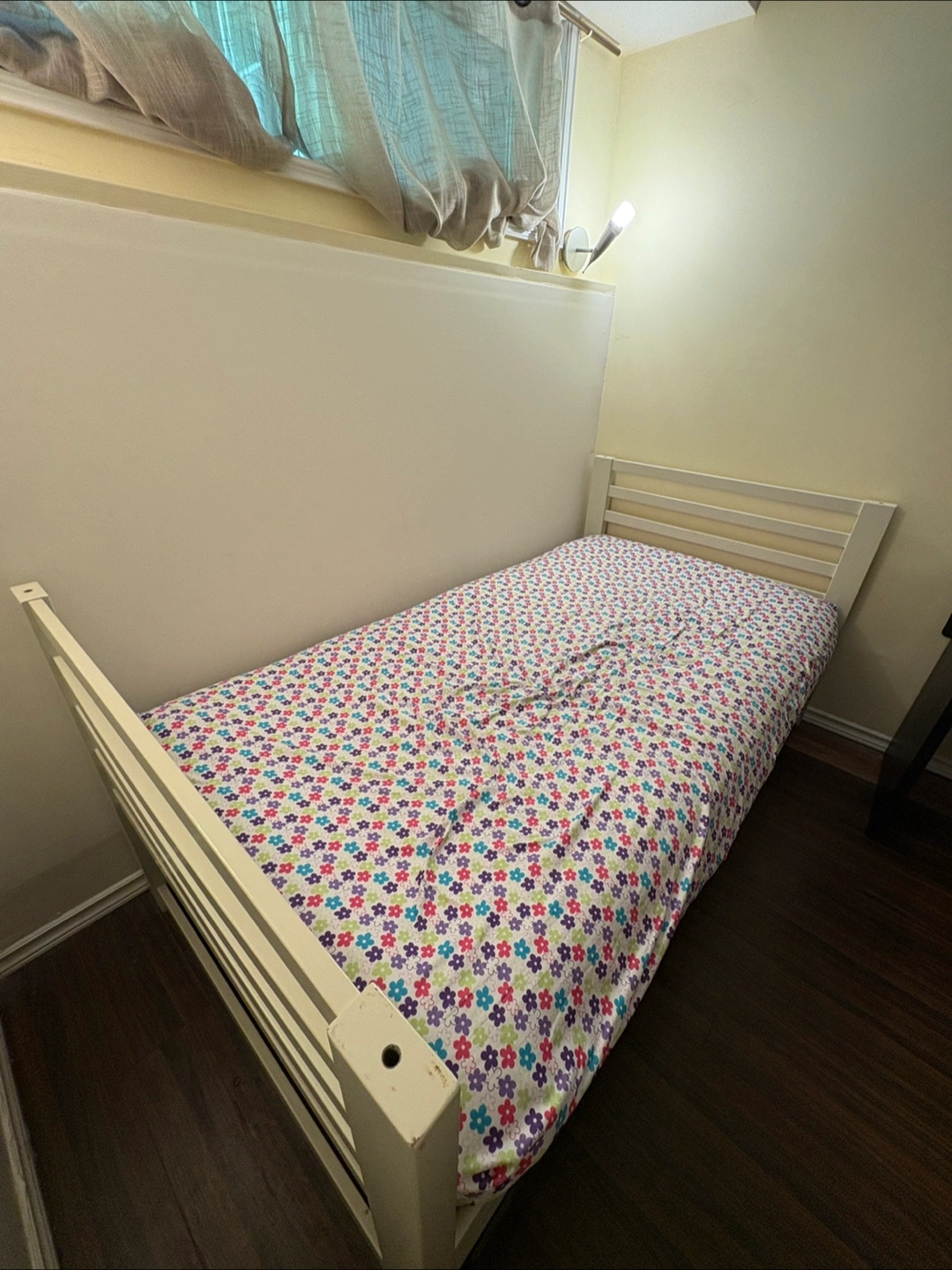 Selling a white IKEA Hemnes bed frame. It's in great condition and ready for a new home. This sturdy bed frame will look great in any bedroom! Selling 2 of these. Each selling for 70. 140$ for both