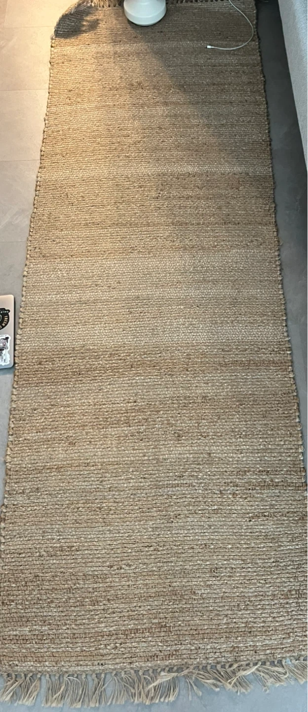 Lovely jute rugs with fringe. It's in great shape and would look great in any room or on the balcony! Bought from H&M
