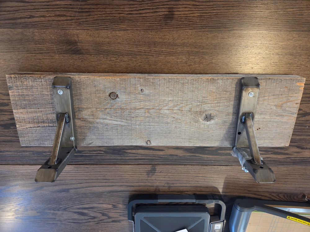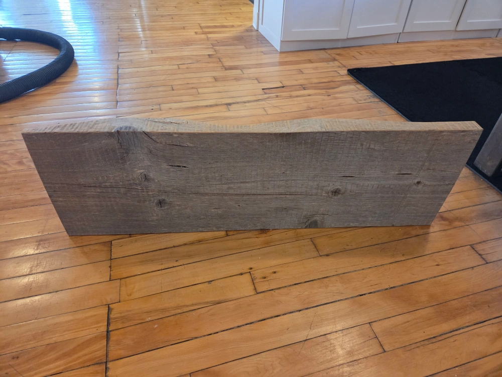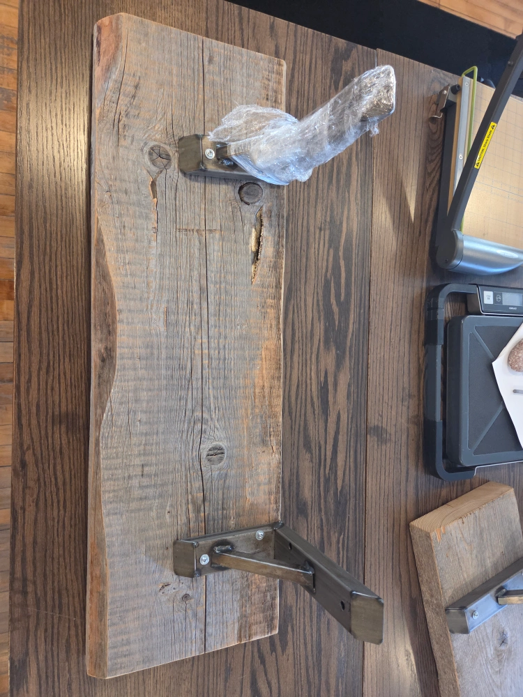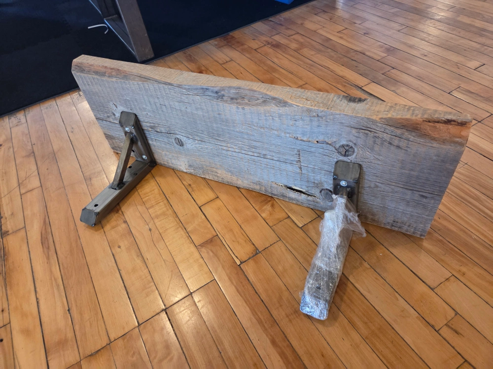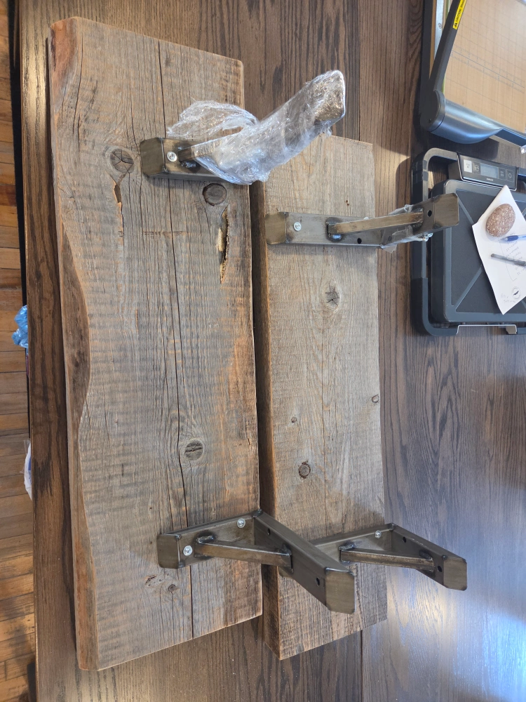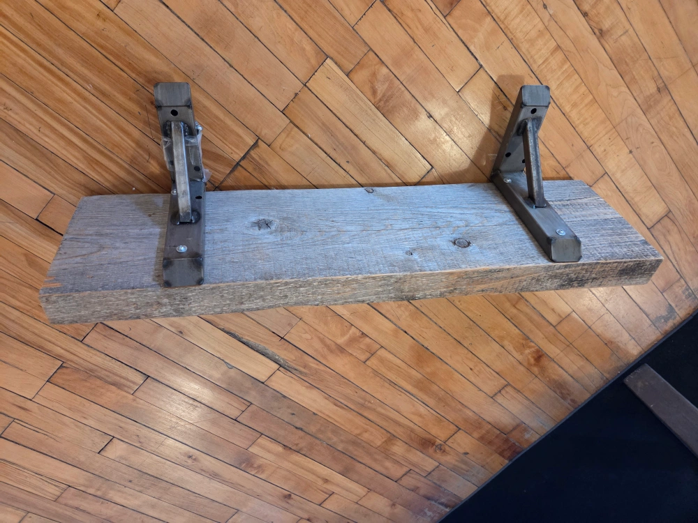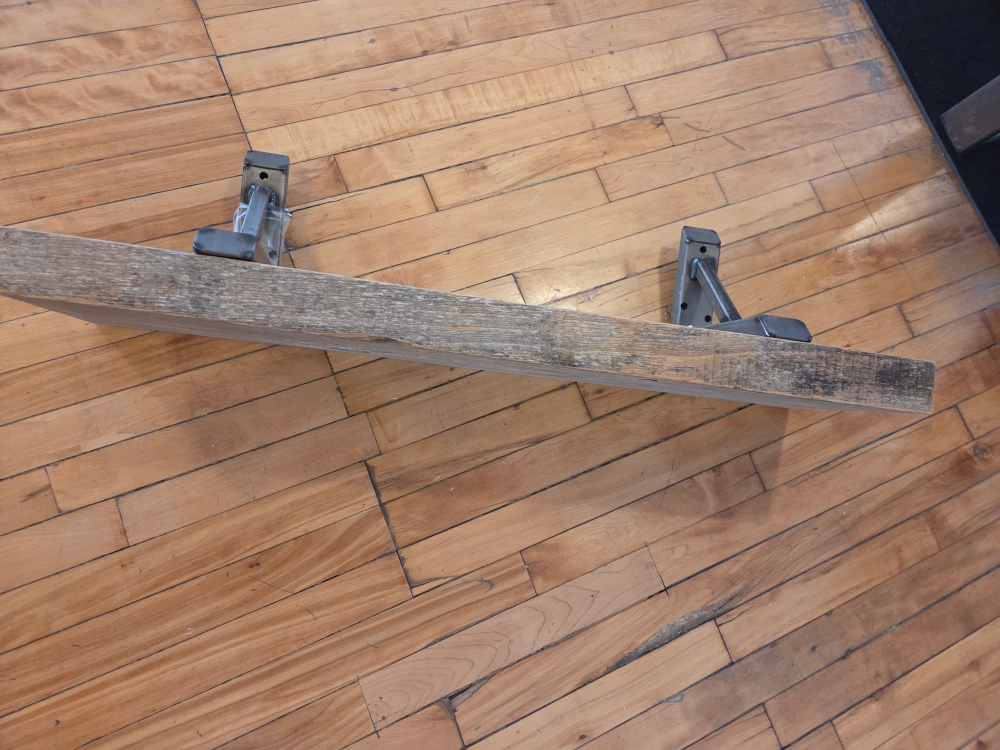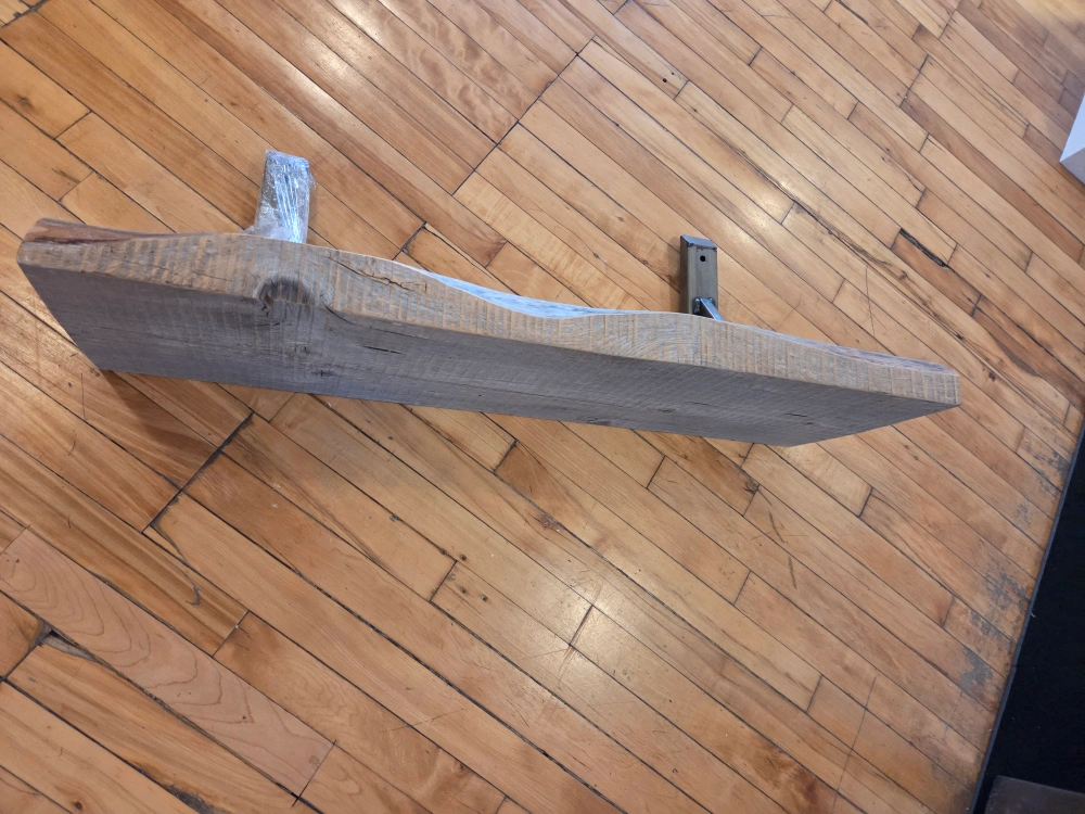 2 shelves available. $150 for both or $100 each. Hardware included. Shelf with wave = 11.5 x 36.5ish x 2.5ish Rectangle shelf = 9.5 x 36.5ish x 2.5ish Pick up only at Richmond/Spadina - weekdays, work hours.