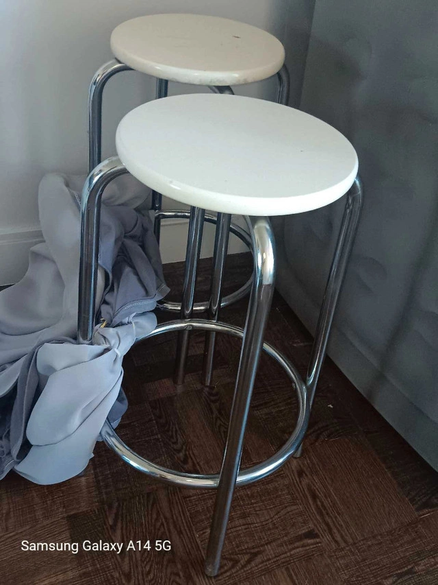 Add a touch of vintage charm to your space with these two retro stools! These stools feature a classic design, perfect for a kitchen, bar area, or as unique accent pieces. While they show some signs of wear consistent with their age, they remain sturdy and functional, ready to bring a nostalgic flair to your home. It's amazing how retro furniture can bring so much character to a space. If the ad is up, they're available! Im helping my friend sell his furniture. Richard (416) 500-5170