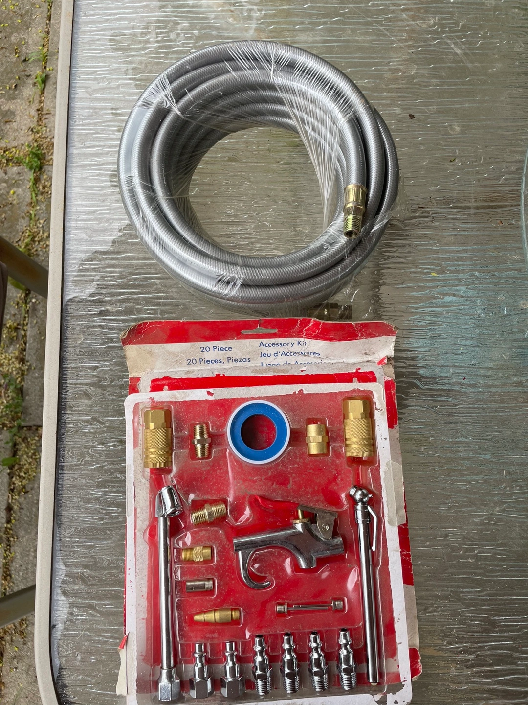 Selling a 20-piece air accessory kit. It includes various fittings, nozzles, and accessories for your air compressor needs. Perfect for inflating tires, operating air tools, and more!