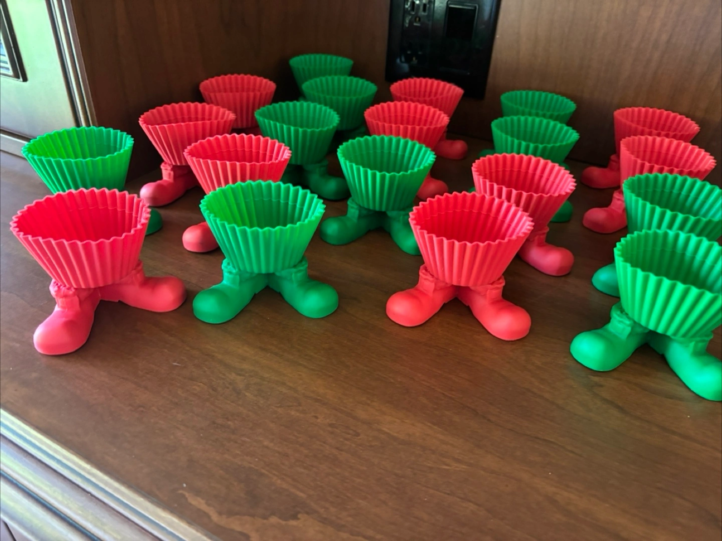 Never used. Get ready for Xmas. 20 Wilton’s Silly Feet, 10 red, 10 green. Red is deeper than pic shows. Won’t split up. PU Weston Rd & Sheppard North York Cash only, no holds.