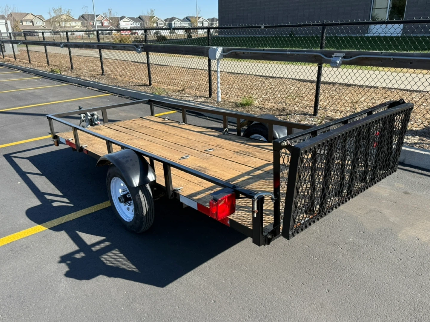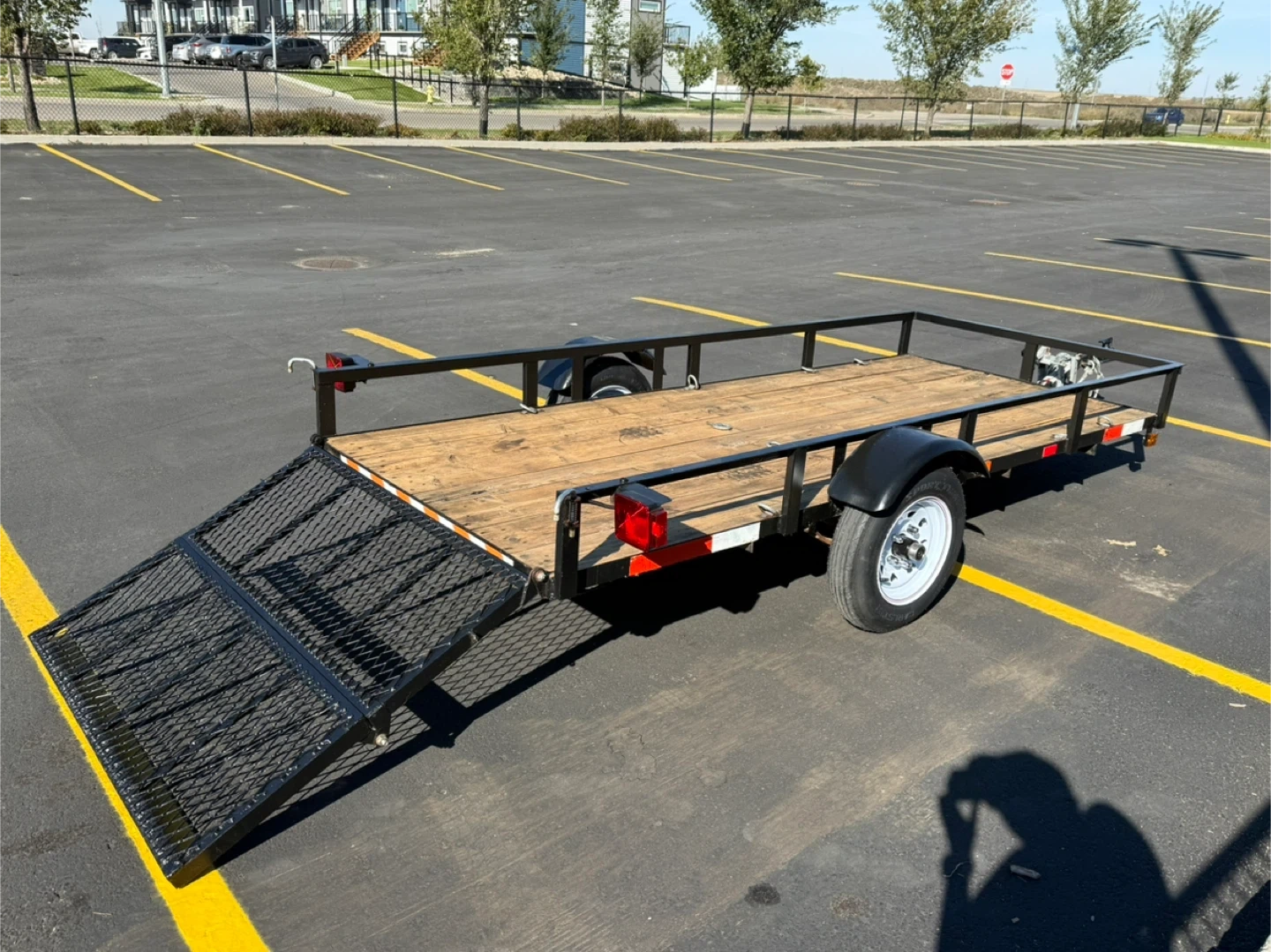 4’ x 10’. Folding steel ramp. New lights and wiring. New tires, rims and wheel nuts. 10 tie-downs. Treated wood. Comes with two used tires and rims. Firm price. NW pickup. No holds and no delivery. Posted on other sites.