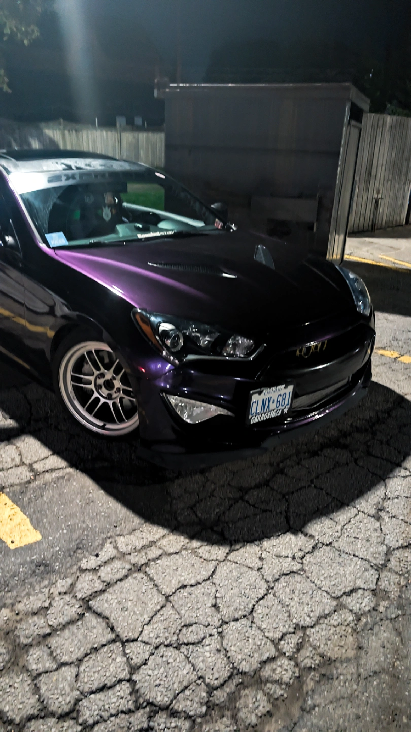 2013 Hyundai Genesis Coupe 2.0T Open to reasonable offers / Trade for S197 GT 4.6L Fast back NOT IN A RUSH TO SELL JUST TESTING WATERS BEFORE IT GOES TO STORAGE ✅ Motor replaced June (120k km) ✅ Wrapped purple (paint faded underneath) ✅ Bucket seats + harness bar (OEM sold with car) ✅ Carbon wheel & lip spoiler ✅ Injen Intake ✅ ACT clutch + R-Spec rear diff ✅ Lowered on Godspeed coils, ISR camber arms ✅ ISR turbo-back exhaust + Stage 2 Uniq tune (pulls hard) ✅ Rear seats gutted (parts included) ✅ Genesis Sedan Big brake upgrade Lots More mods... More information upon request ⚠️ Needs clutch master (part included), alignment, has rear suspension clunk, minor fender bender in past. Message me for more information Car fax available upon request 14k as is with everything 12,500 without rims, buckets or carbon wheel !WILL SELL CERTIFIED FOR RIGHT PRICE!