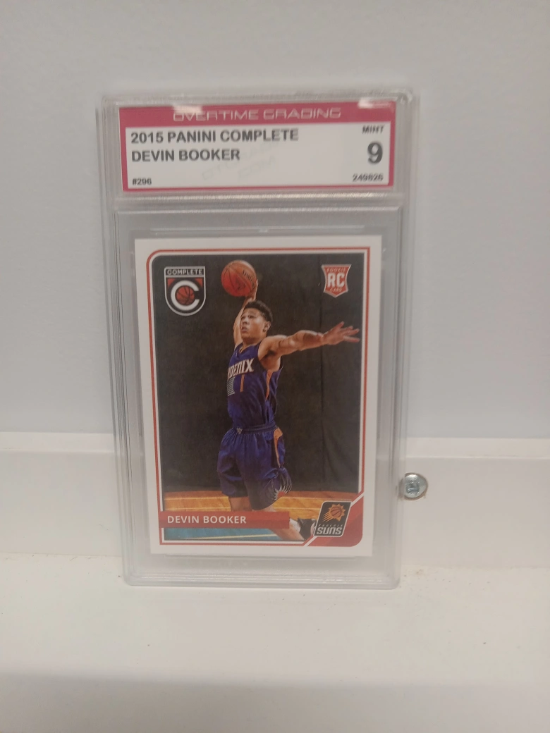 Up for grabs is a 2015 Panini Complete Devin Booker card, graded Mint 9 by Overtime Grading! This card features Devin Booker in his Phoenix Suns uniform. A great addition to any basketball card collection!