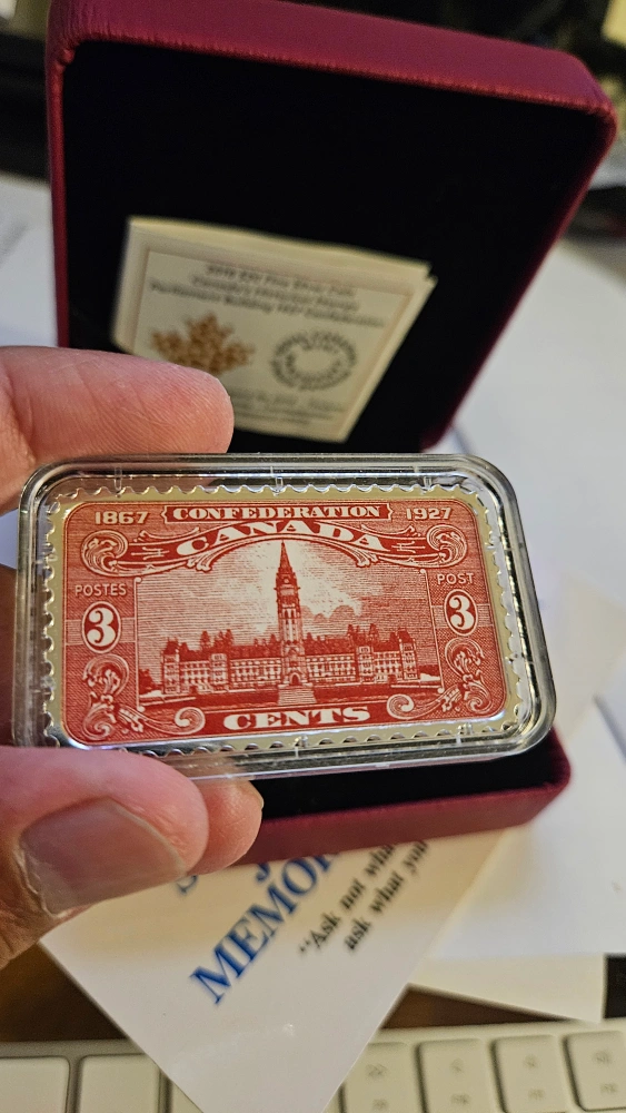 Selling a 2018 $20 Fine Silver Coin featuring Canada's Historical Stamps - Parliament Building 1927. It comes in its original box.