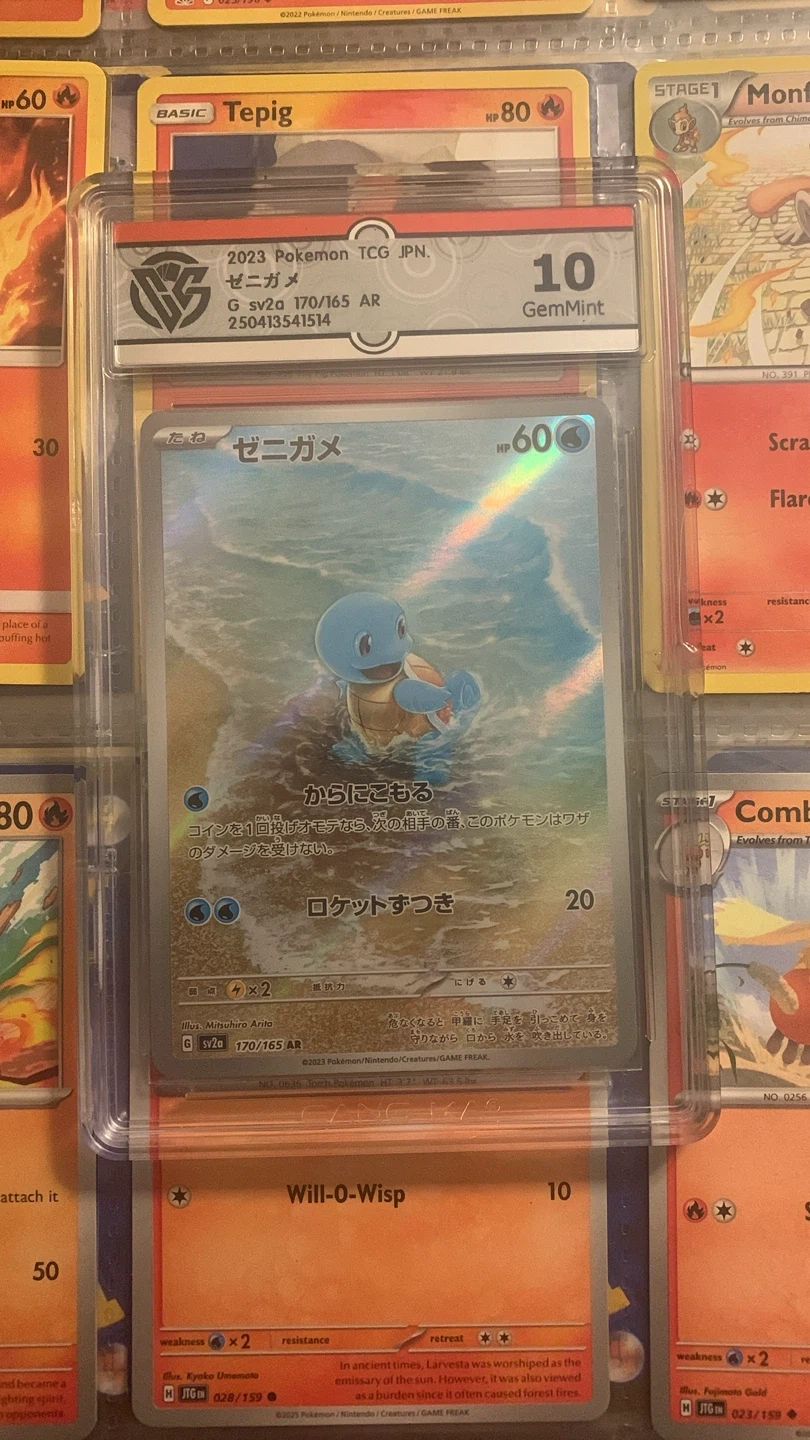 Selling a 2023 Pokemon TCG JPN card. It's ゼニガメ, numbered G sv2a 170/165 AR, and graded GemMint 10!