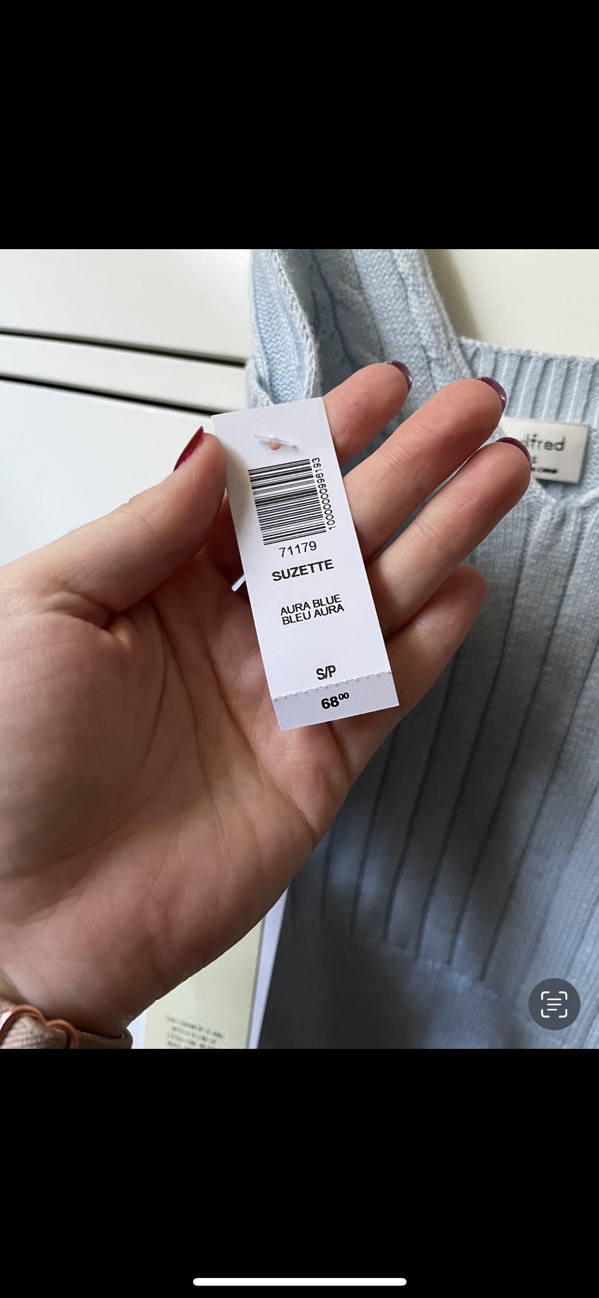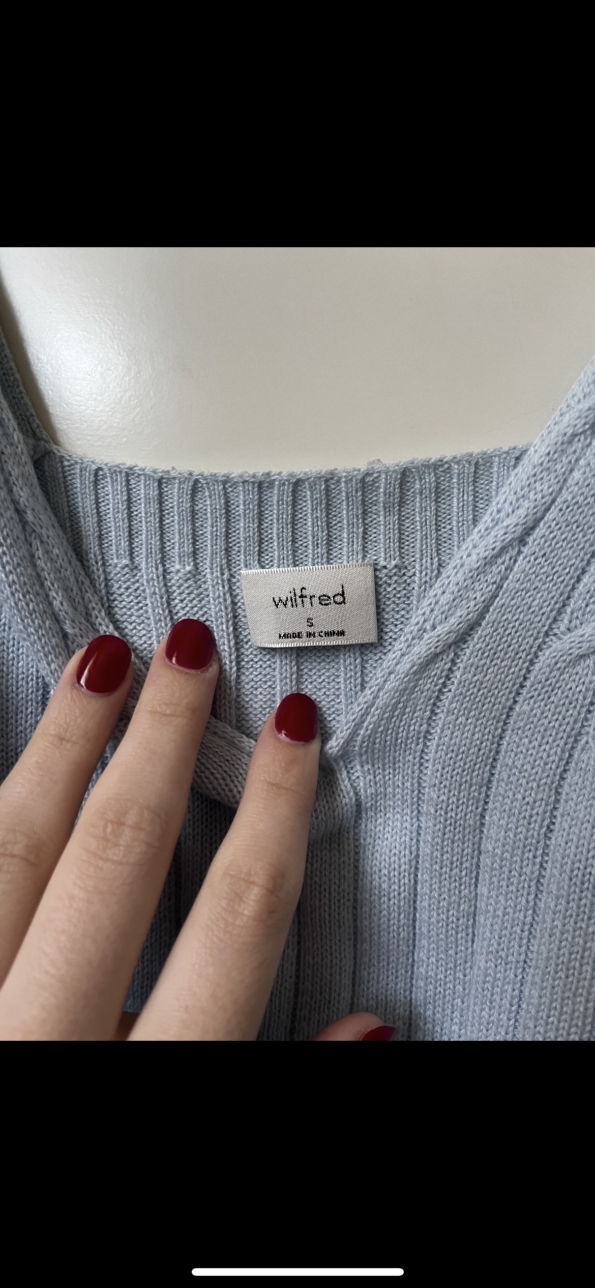 BNWT Wilfred Suzette tank in aura blue size S Never worn, tags still on Slight pill as seen in pictures $68 retail price, selling for $40 OBO. Meet up/pick up in Richmond, along the Canada line, or UBC